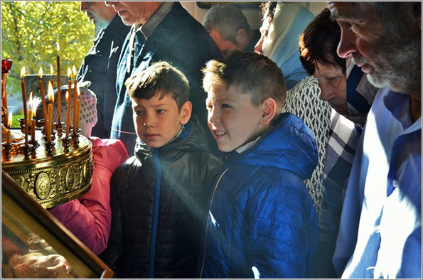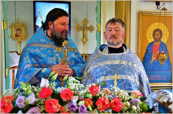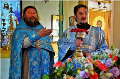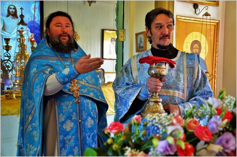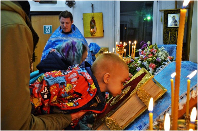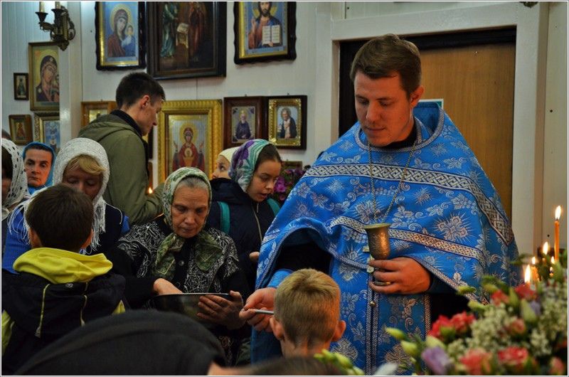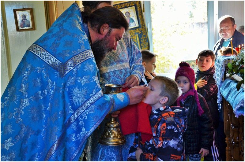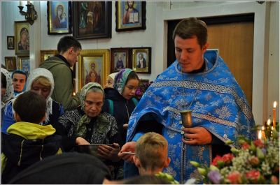 По окончании Литургии отец настоятель поздравил всех с воскресным днем и обратился к верующим с проповедью, посвященной празднику Покрова Божией Матери: