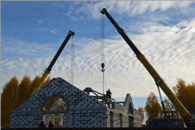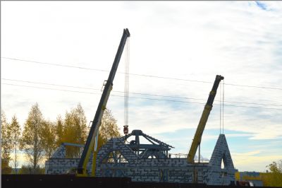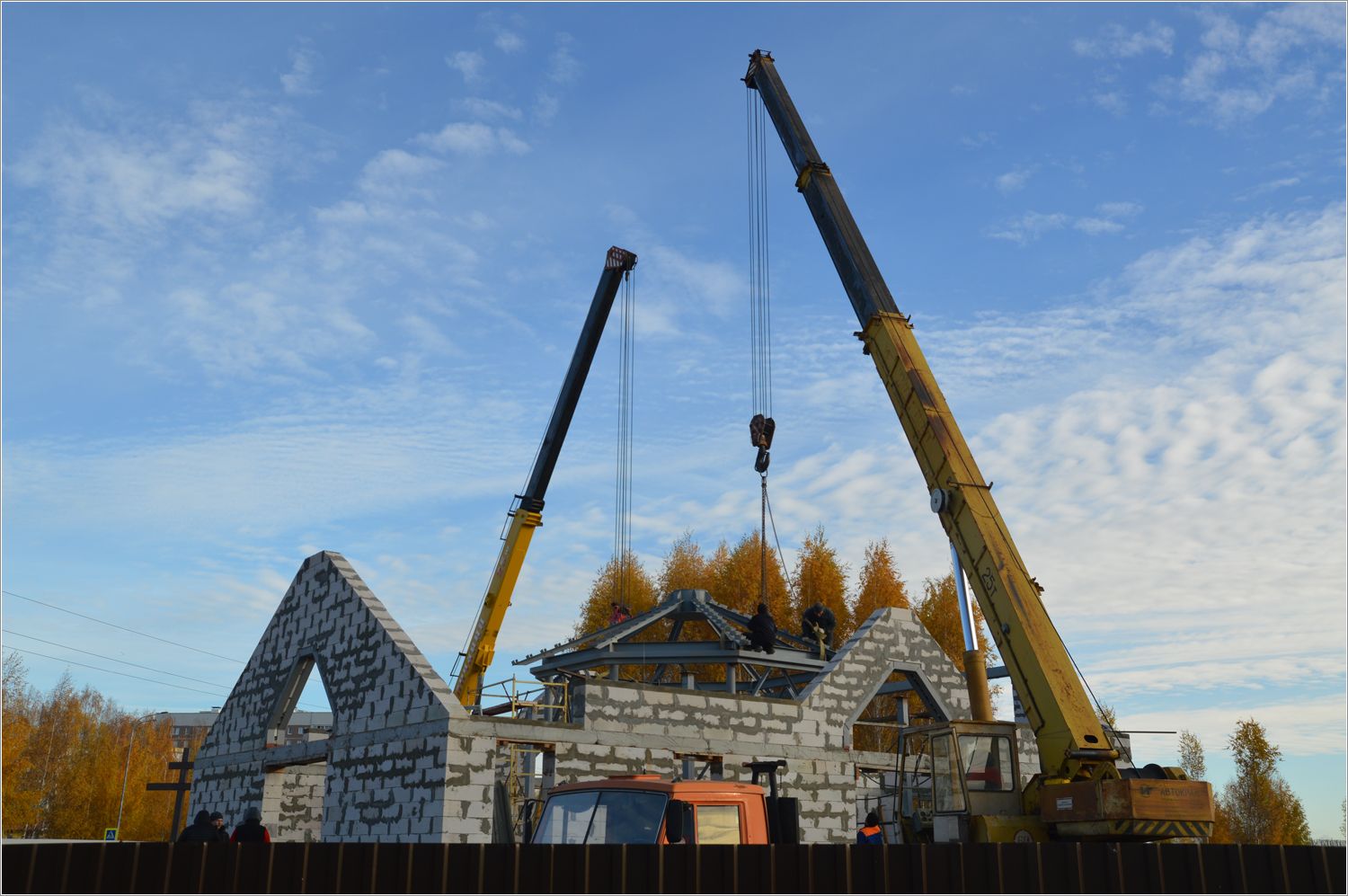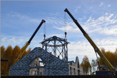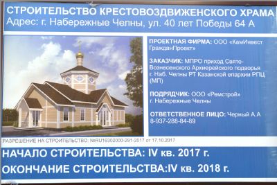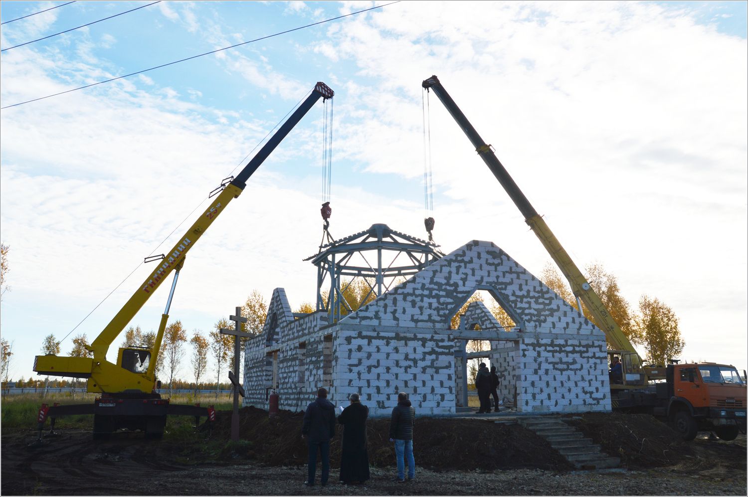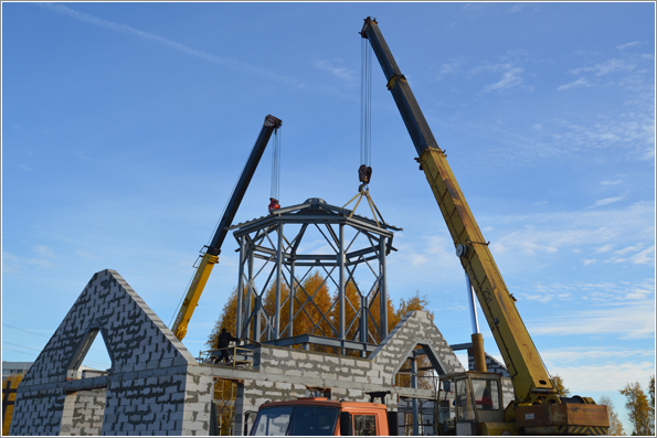 18 октября случилось еще одно радостное событие для православных жителей города Набережные Челны. В этот день было установлено основание для купола Крестовоздвиженской церкви. Строительство нового храма началось год назад, и за это время стены храма выросли в полную величину. Для установки положенного по проекту купола храма на месте была сделана металлоконструкция, которую необходимо было поднять на высоту колонн.