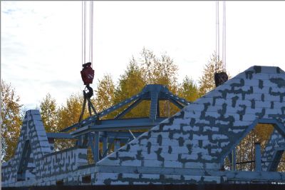 После установки основания купола появилась возможность заняться крышей нового челнинского храма. До окончания строительных работ еще далеко, но уже видно, каким храм будет.