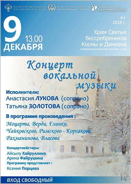 9 декабря в Набережных Челнах в храме святых бессребреников Космы и Дамиана состоится вокальный концерт, сообщает группа храма.
