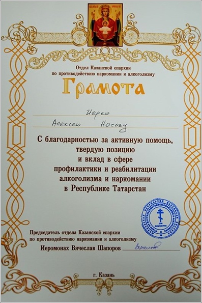 Завершилось мероприятие вручением грамот активистам трезвенной работы. Приходским обществам трезвости были также переданы новые значки Казанского епархиального общества «Трезвение», которые подчеркивают единство всех православных обществ трезвости на территории Татарстана.
