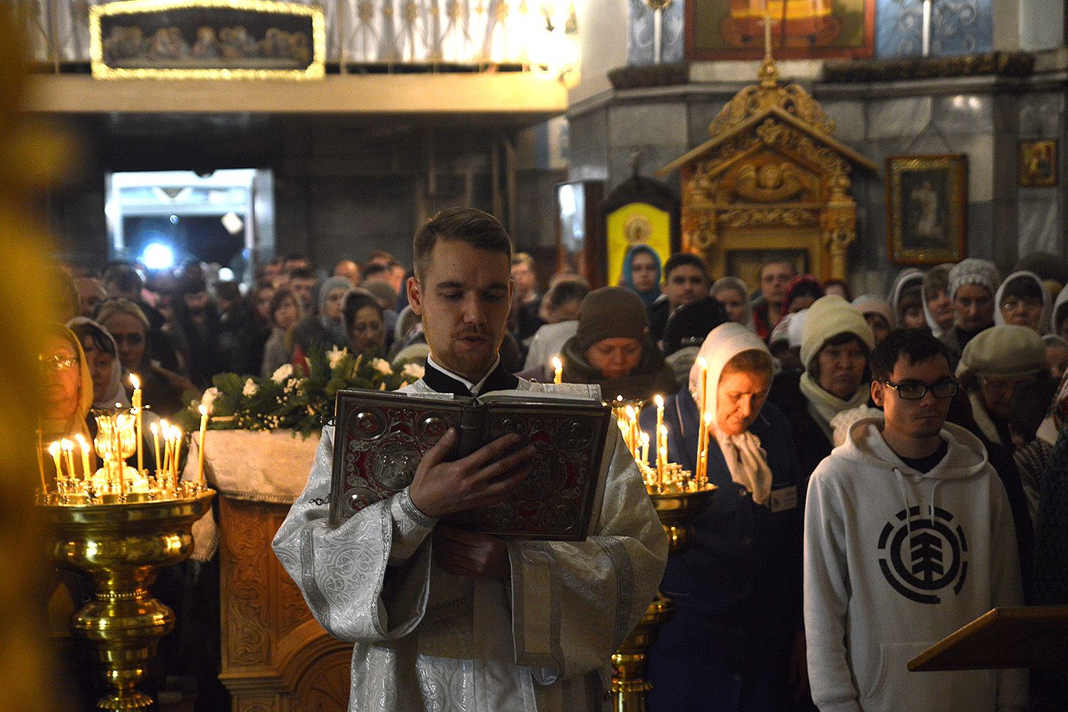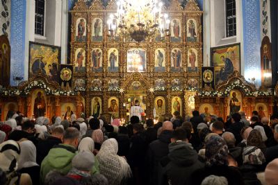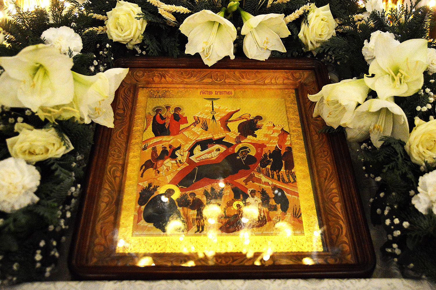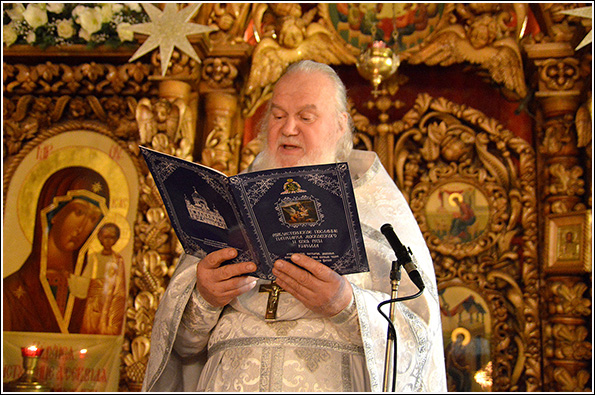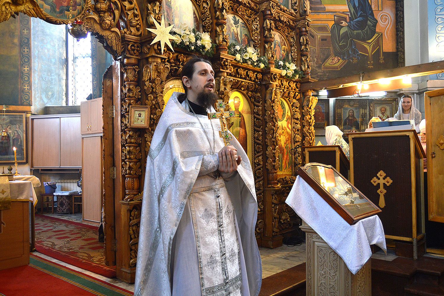 Батюшка поздравил всех пришедших в храм с праздником Рождества Христова и призвал всех славит Бога, напомнив, что «Христу поклонились и простые пастухи, и образованные волхвы, потому что Он призывает к себе всех, независимо от происхождения».