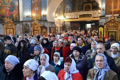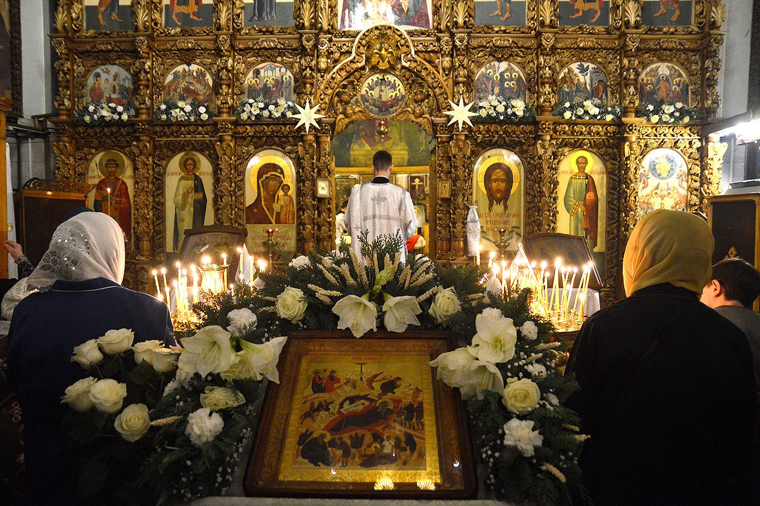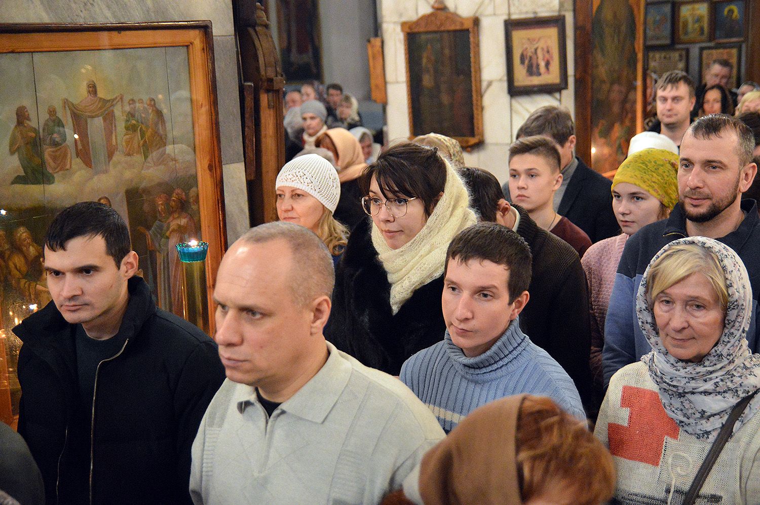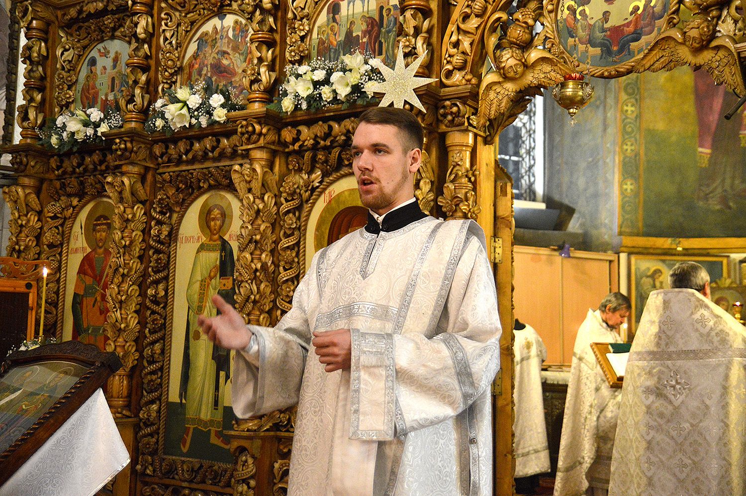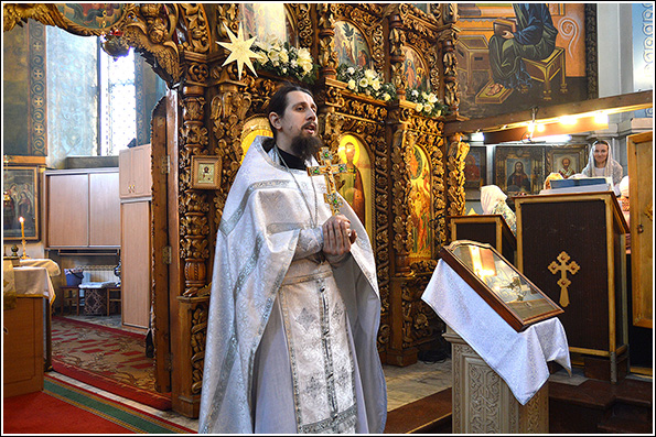 Батюшка поздравил всех пришедших в храм с праздником Рождества Христова и призвал всех славит Бога, напомнив, что «Христу поклонились и простые пастухи, и образованные волхвы, потому что Он призывает к себе всех, независимо от происхождения».