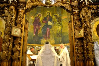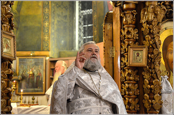 «Мы все с вами в этом Таинстве принимаем в себя Его человечество, обоженное, спасенное, воскресшее, а через Его человечество, мы соединяемся с Его божеством. И вот там, в духовном горнем мире, в Царствии Небесном, Он сидит на Престоле и мы сегодня сподобились великой чести — быть причастными Его Божеству».