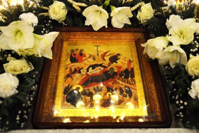 «Бог становится человеком, чтобы человек стал богом. После грехопадения наших прародителей, зло извратило всю природу, не только нашу, человеческую — мы стали смертны и тленны, но и законы всего мироздания. И для того, чтобы человек вновь мог войти в Царство Небесное, необходимо было, чтобы Сам Бог вмешался в наше спасение. И вот Бог приходит на землю. Он еще лежит в яслях, маленький, и впереди у Него жизнь, полная всех наших человеческих событий — Он и ел, и пил, Он и уставал, и плакал, Он и гневался, но при этом Он был Богом. Богом и Человеком одновременно. Для того чтобы, восприняв нашу человеческую природу, вознести ее на Крест, чтобы она умерла, но потом воскресла».