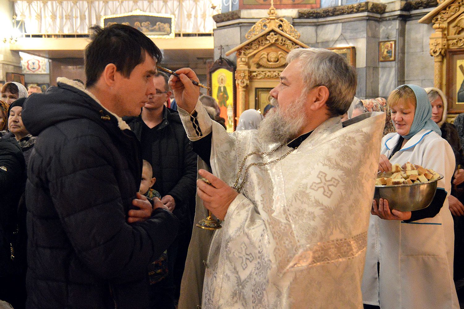 Настоятель поздравил всех собравшихся с праздником и особо отметил тех, кто причастился Святых Христовых Таин:
