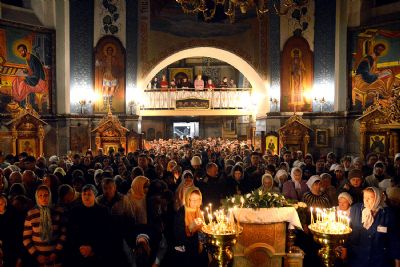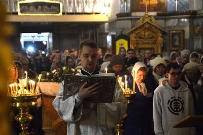 Все эти дни, даже между службами, храм был полон верующих. Каждая душа тянется к Богу в это волшебное праздничное время, что особенно приятно наблюдать, ведь когда человек обращается к Богу, он старается исправить свою жизнь, а значит — мир становится лучше. Господь для того и пришел на землю, чтобы восстановить нашу падшую в первородном грехе человеческую природу. Это особо отметил в своей проповеди за ночной службой настоятель Свято-Вознесенского архиерейского подворья протоиерей Андрей Дубровин: