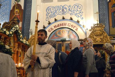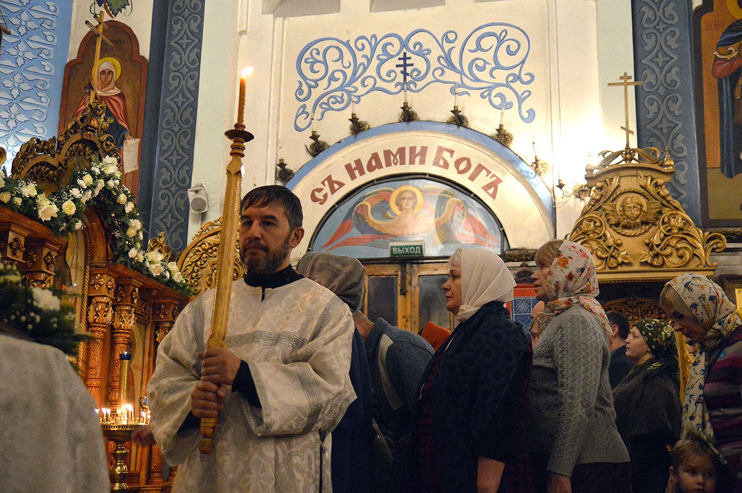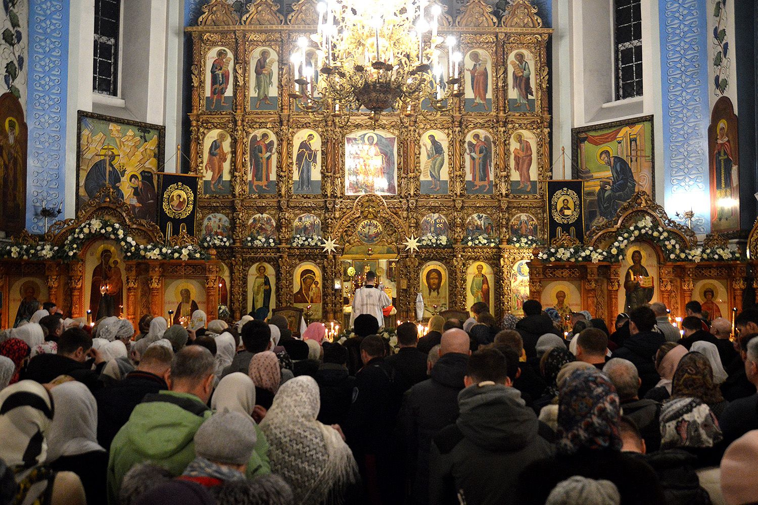 За богослужением клирик собора протоиерей Александр Филькин зачитал Рождественское послание Святейшего Патриарха Кирилла, а за поздней Божественной литургией послание митрополита Казанского и Татарстанского Феофана было зачитано диаконом Виталием Семеновым.
