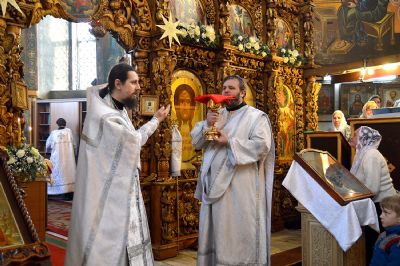 Позднюю службу и праздничный молебен в Боровецкой церкви отслужил иерей Артемий Танаев. По завершении он обратился к верующим со словом проповеди, в которой рассказал о смысле праздника Рождества Христова и о том, что следует делать, чтобы наследовать Царствие Небесное: