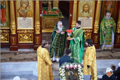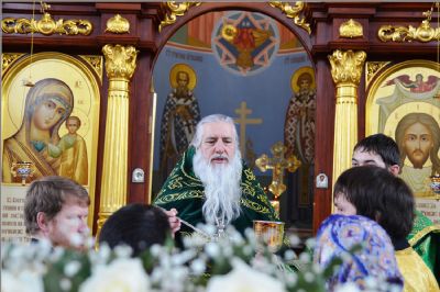 «Радостно, что мы здесь собрались. Этот святой близок к нам, близок не только по годам жизни, но и по его присутствию в нашей с вами жизни. Когда встречается нам та или иная напасть, мы прибегаем к нашим заступникам — к тем, кто ближе всего к престолу Божьем, кто слышит и походатайствует. И по молитвам убогого Серафима Господь милует. Бог нас любит, и его руки всегда к нам протянуты. Как сказано в Священном Писании: «Се, стою у двери и стучу: если кто услышит голос Мой и отворит дверь, войду к нему, и буду вечерять с ним, и он со Мною» (Откр. 3,20), — сказал отец Андрей.