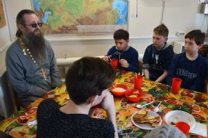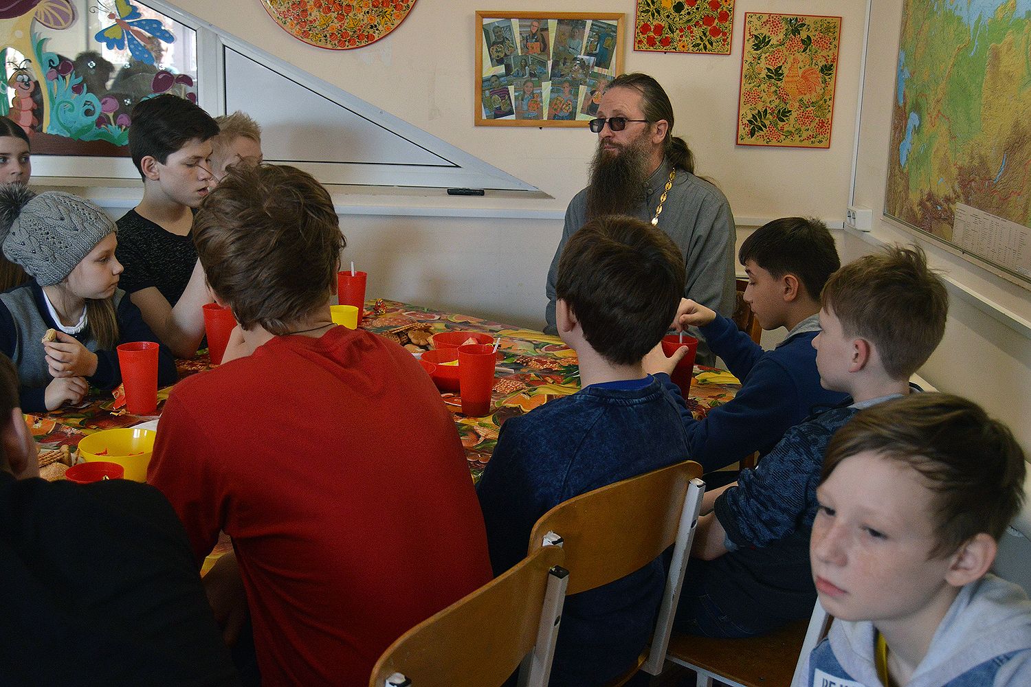 В преддверии Великого поста, 10 марта, в Клубе юных спасателей «Спас» при Свято-Вознесенском соборе состоялась беседа с батюшкой — клириком Боровецкой церкви иеромонахом Иннокентием (Ручкиным). На встречу со священником пришли дети из воскресной школы «Радуга», воспитанники «Спаса», а также родители и педагоги.