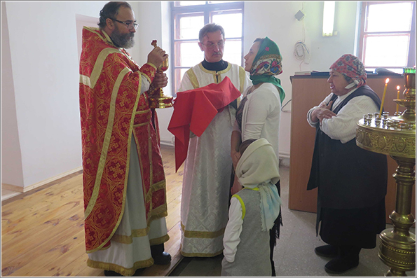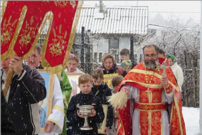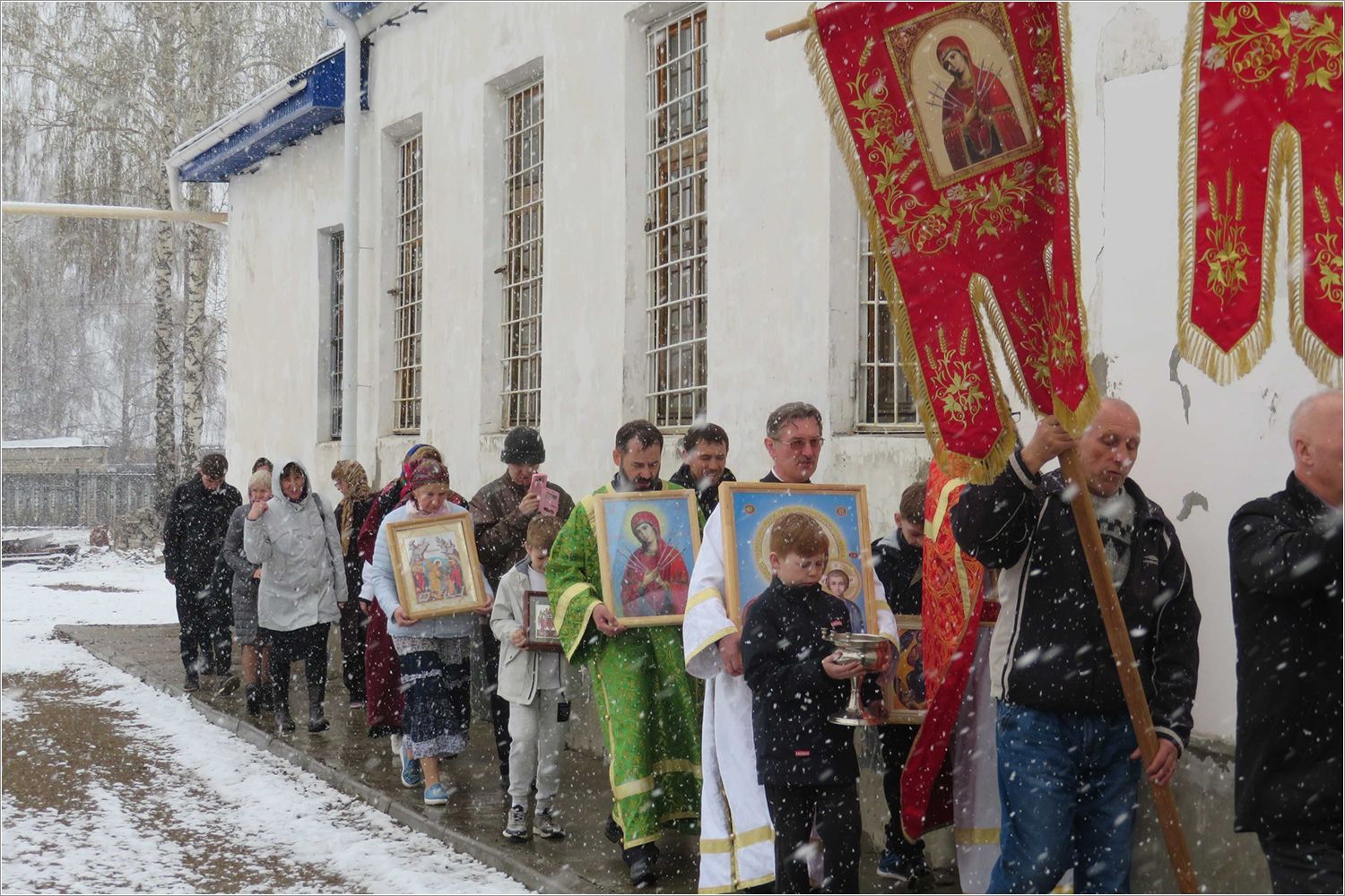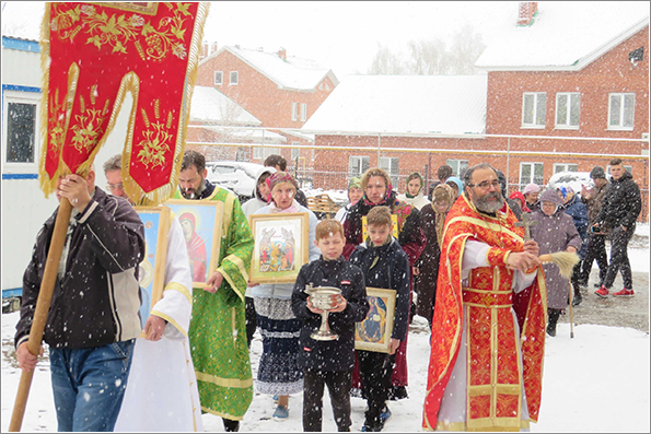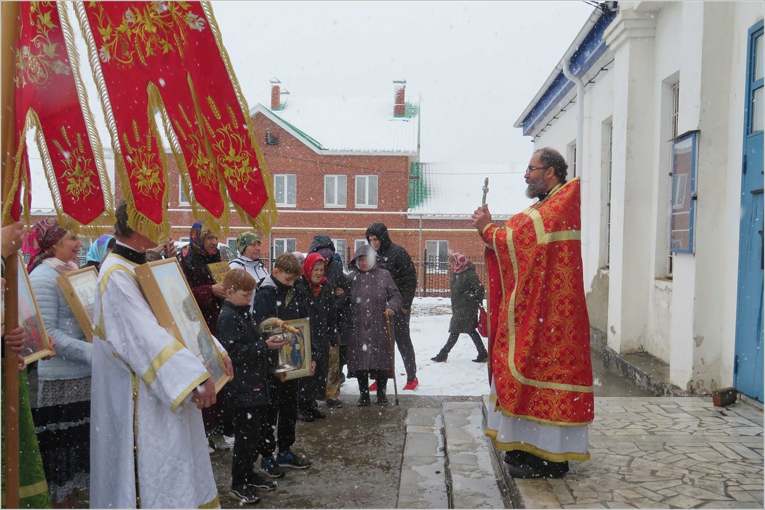 В конце богослужения все прихожане прошли праздничным крестным ходом. Настоятель храма иерей Виктор Кобзов проздравил прихожан с праздником: