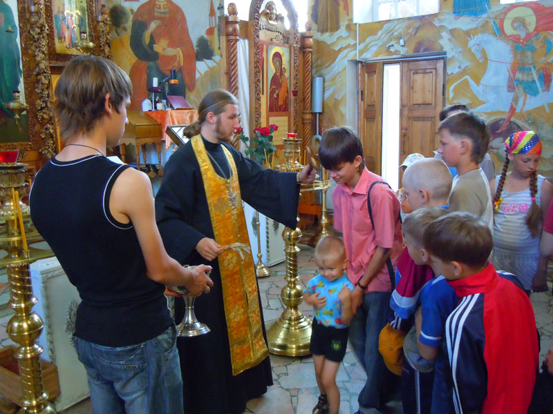 Раннее утро, но у Орловского храма уже толпится народ. Через несколько минут начнется молебен, потом ребята, воспитатели и вожатые загрузятся в автобус, который повезет их навстречу радостным дням в Анзирском скиту елабужского монастыря.