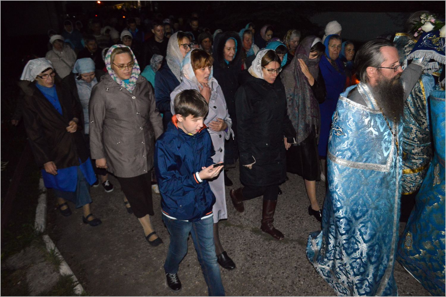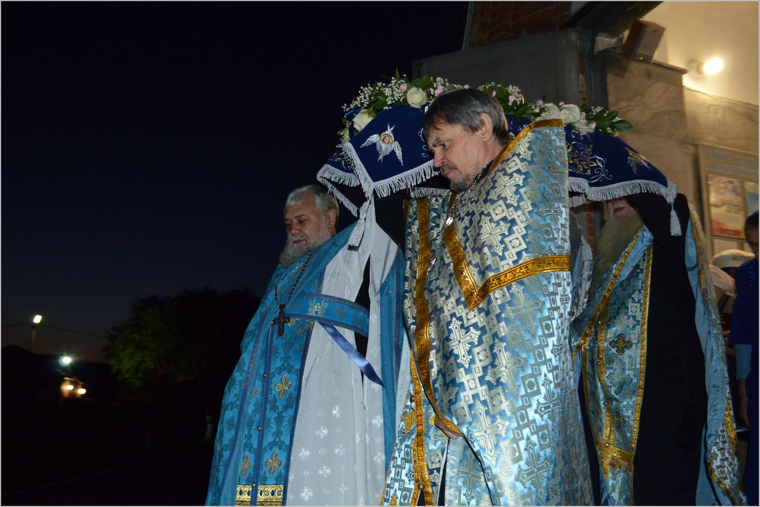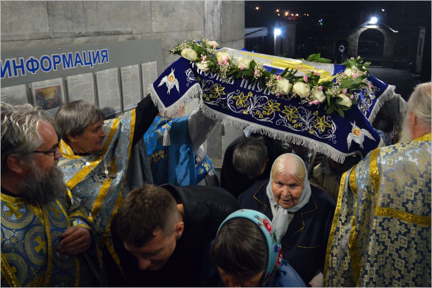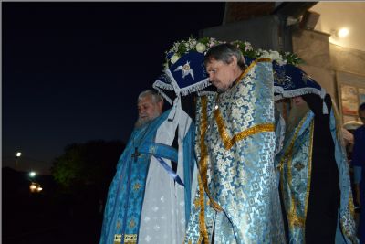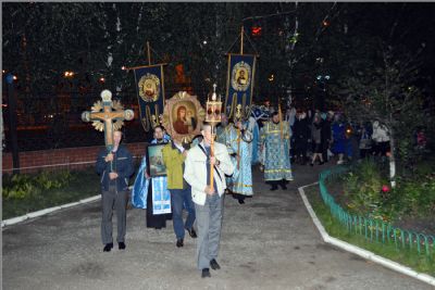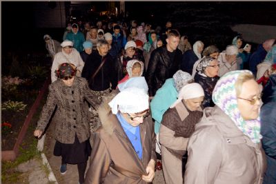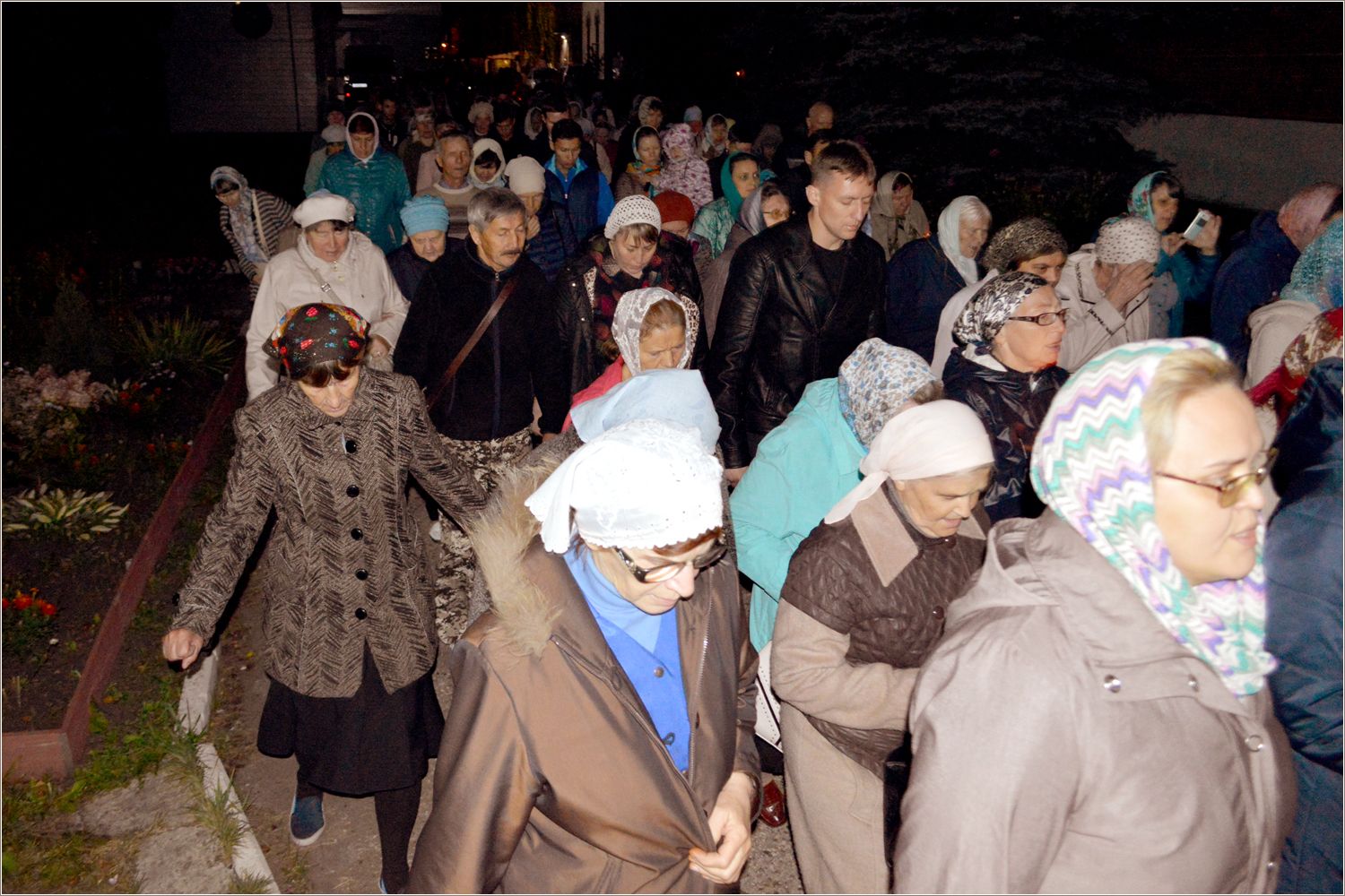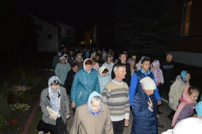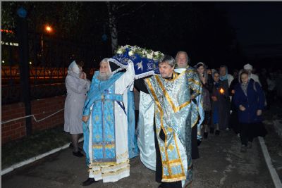 В конце Всенощного бдения плащаница, изображающая Богородицу во гробе, была крестным ходом обнесена вокруг собора, и сопровождающие её православные челнинцы смогли духовно присоседиться к тому далёкому от нас по времени, скорбному и одновременно радостно-светлому дню, в который сами апостолы Христовы несли тело Пречистой в гробницу.