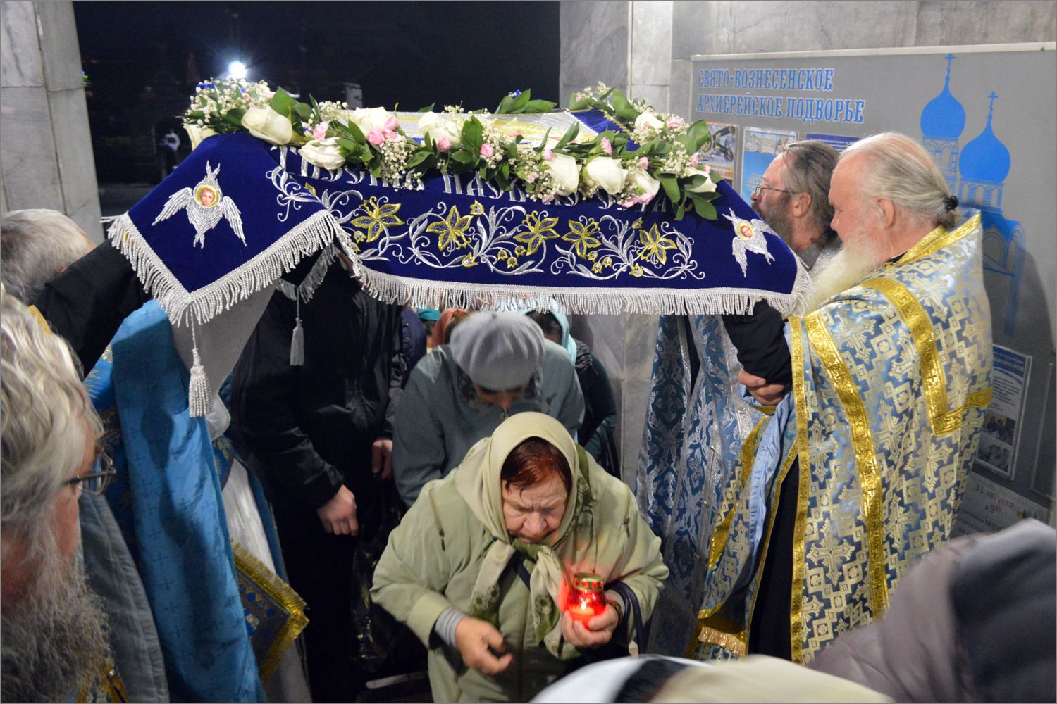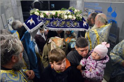 По возвращении в храм верующие смогли поклониться плащанице, а священниками было совершено помазание всех присутствующих освященным елеем.