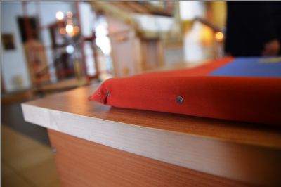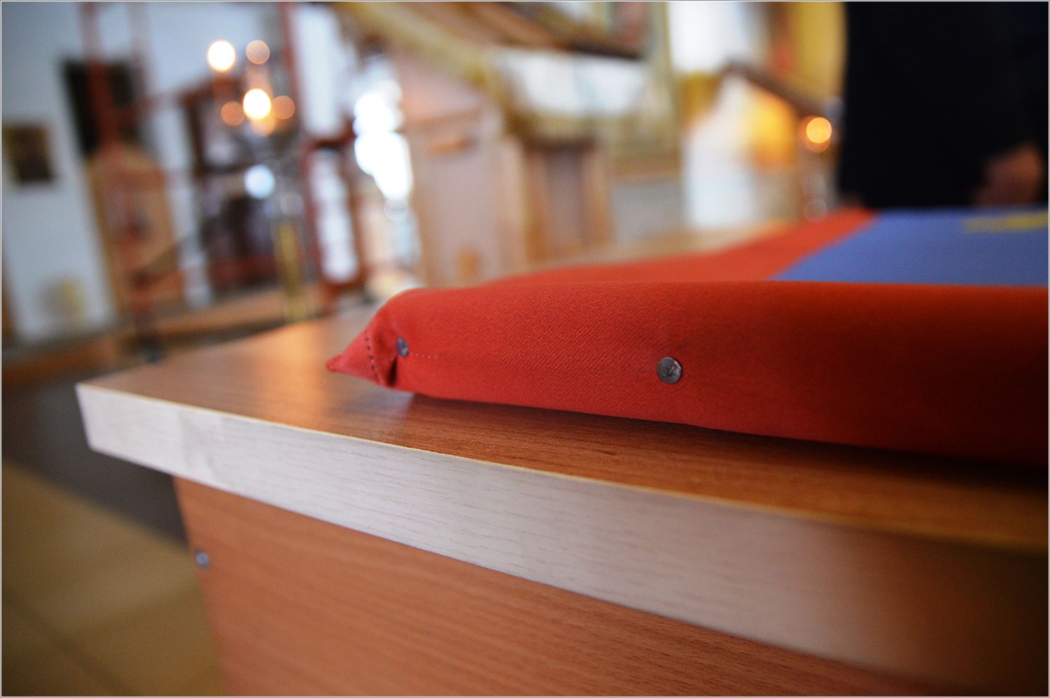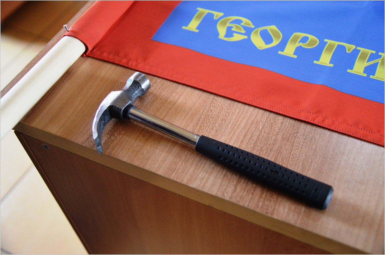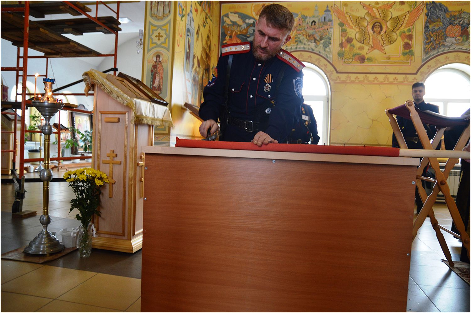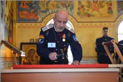 Как духовник Георгиевского десятка, протоиерей Валерий Каранаев возглавил церковное последование, которое завершилось освящением флага и прибивкой его к древку. Честь забить первый гвоздь была дана атаману хутора Юрию Клюкину. Все присутствующие на торжестве казаки Георгиевского десятка смогли принять участие в этом торжественном акте единения. Среди тех, кто взял в этот день молоток, был и юный казаченок подразделения Матвей Быков, который в этот день еще и праздновал свой день рождения.