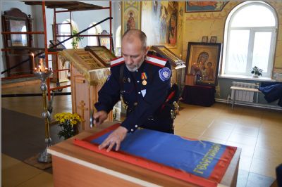 По окончании чина атаман хутора поздравил казаков с обретением флага подразделения, он рассказал, чем должен быть флаг для Георгиевского десятка и чем является флаг для любого воинского подразделения.