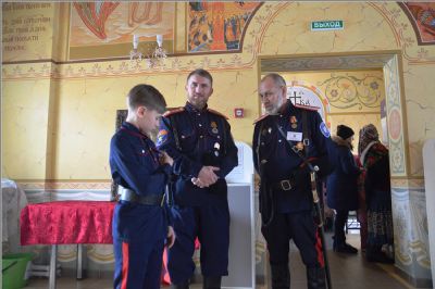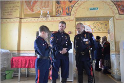 На торжественном чине молились казаки Георгиевского десятка, во главе с десятником Михаилом Рыловым и атаманом Боровецкого хутора Юрием Клюкиным. Кроме них в храме молились священнослужители: благочинный Закамского округа, духовник хутора протоиерей Андрей Дубровин, настоятель церкви великомученика Георгия Победоносца протоиерей Валерий Каранаев и иерей Василий Федосеев, казаки Боровецкого хутора из других десятков и прихожане храма.