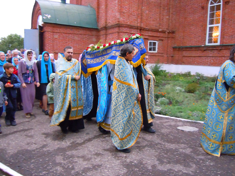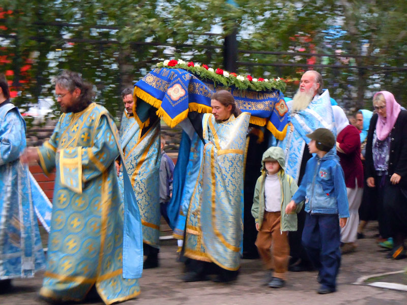Вечером 29 августа в Свято-Вознесенском архиерейском подворье совершено всенощное бдение с чином Погребения Пресвятой Богородицы и крестным ходом. Богослужение возглавил настоятель собора протоиерей Андрей Дубровин.