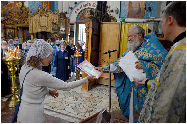В день празднования Казанской иконы Божией Матери после крестного хода вокруг храма благочинный Закамского округа протоиерей Андрей Дубровин торжественно вручил участникам Клуба любителей крестных ходов благодарственные грамоты и памятные знаки «Челнинский крестоходец» в благословение духовных и телесных трудов, понесенных во время больших и малых крестных ходов 2019 года.