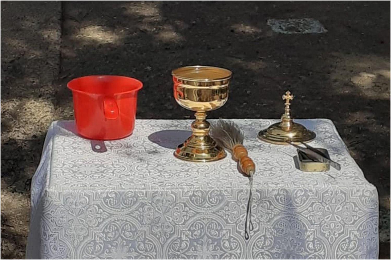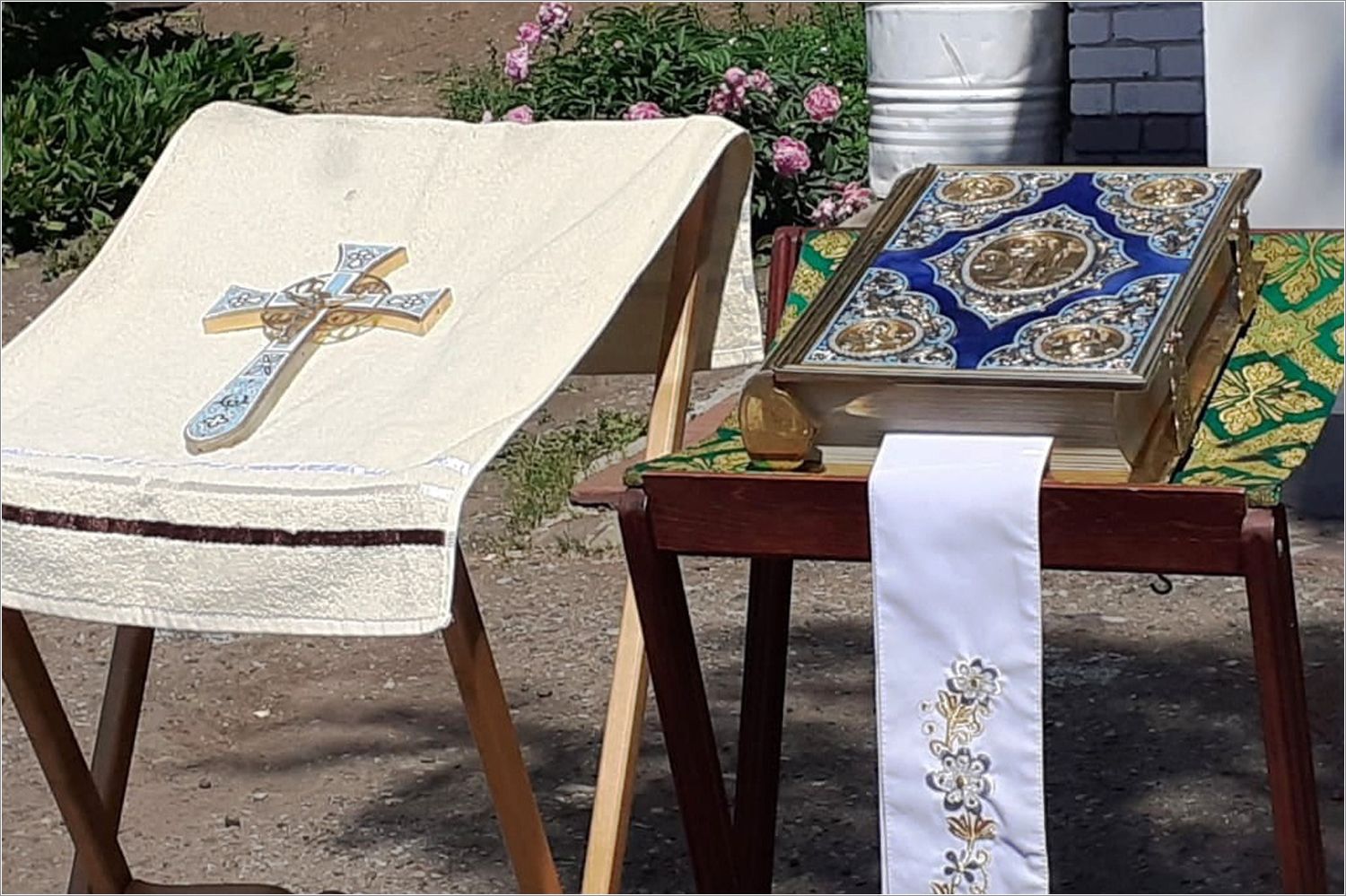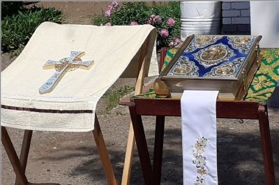 Летнее время дает возможность служить не только в самом храме, но и на храмовой территории, освящая территорию прихода и благословляя людей.