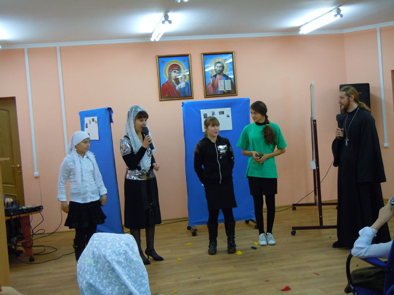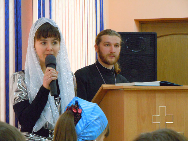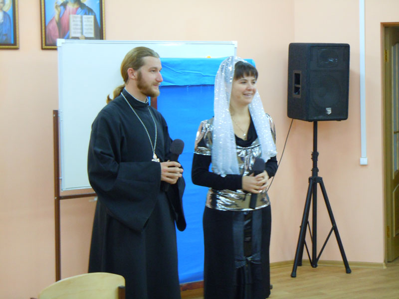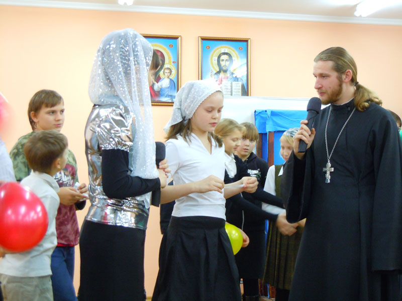 Праздничную программу вели отец Михаил Санаров (священник храма прп.Серафима Саровского) и Ольга Леонидовна Волкова (преподаватель детской воскресной школы (ДВШ) Свято-Вознесенского собора). В составе жюри были Е.А. Кораблева (преподаватель школы катехизаторов), С.В.Сгогурина (преподаватель ДВШ храма прп.Серафима Саровского) и Н.А.Пичугина (преподаватель ДВШ храма Космы и Дамиана).