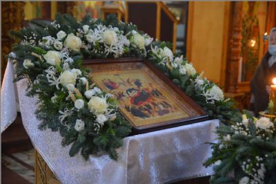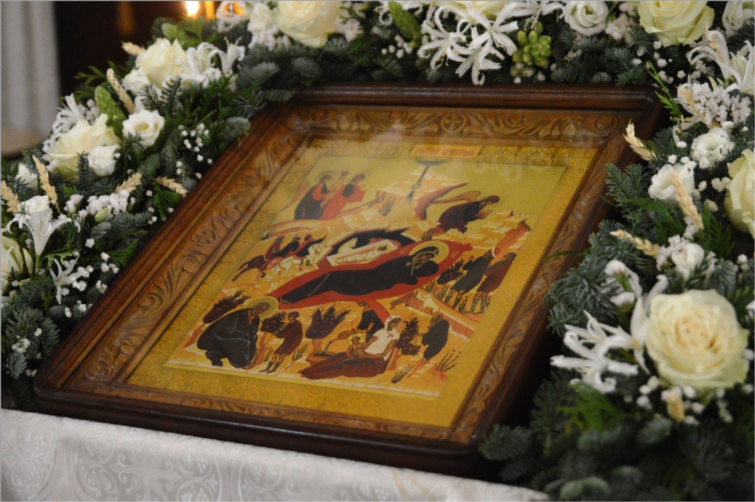 По отпусте литурии на середине храма был поставлен горящий светильник, и около него изшедшие из алтаря священнослужители и хор сели тропарь и кондак праздника Рождества Христова возле иконы праздник, символически показывая, что Рождество уже наступило и младенец лежит в яслях.