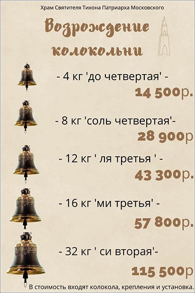 Для тех, кто хочет поучаствовать в этом благом деле, может подойти в церковную лавку храма и внести свое пожертвование на частичную или полную сумму одного из колоколов. Все подробности в группе храма.