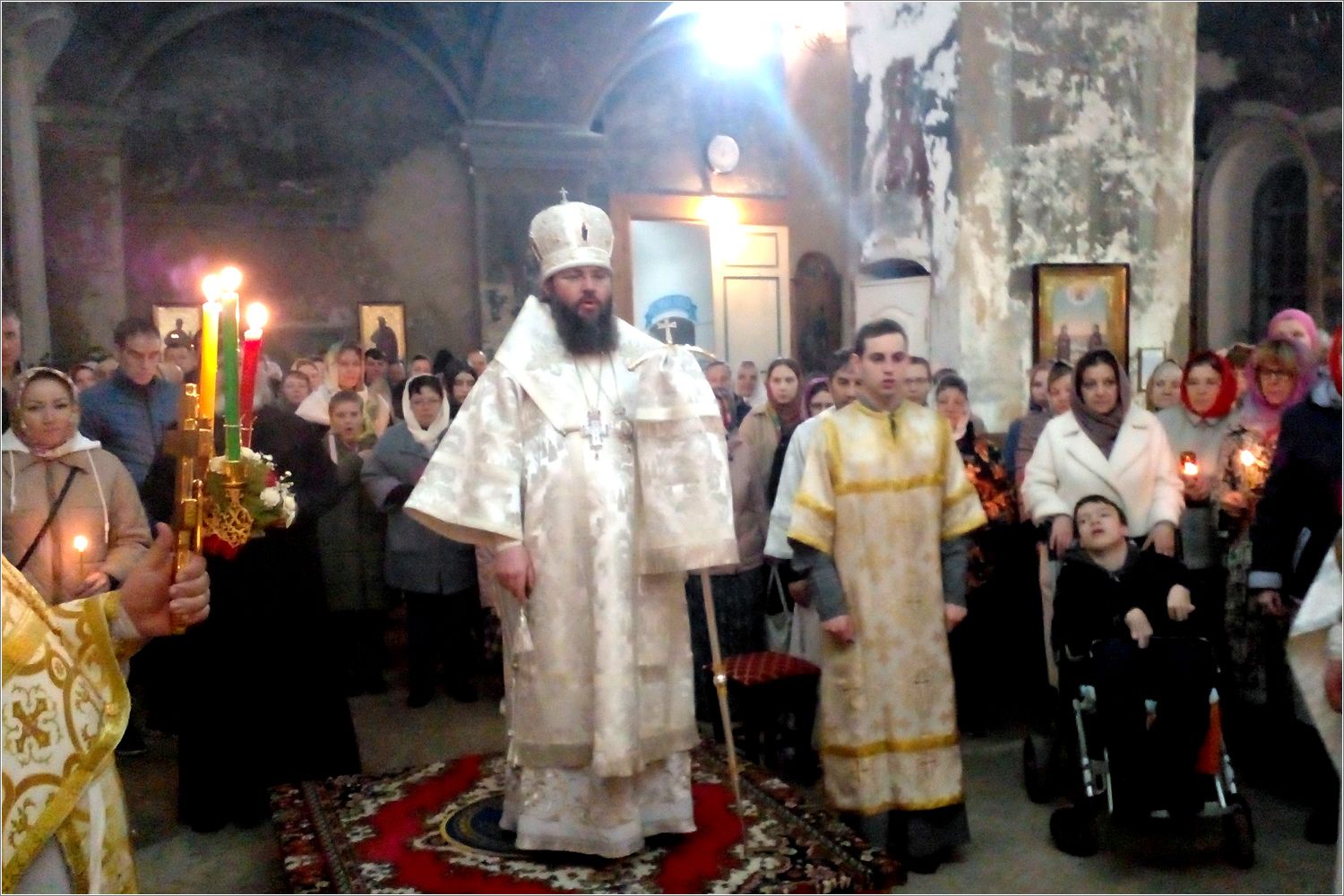 Начался праздник традиционным крестным ходом с пасхальными песнопениями и радостным колокольным звоном. Во время Литургии владыка прочитал прихожанам знаменитое огласительное слово в честь праздника Пасхи святителя Иоанна Златоуста, которое так замечательно подчеркивает великую важность Воскресения Христова для всего человечества. По завершении службы епископ обратился к собравшимся со словами архипастырского наставления: