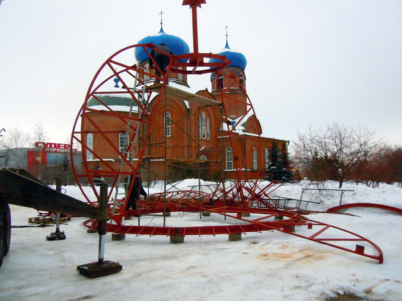 Бригада мастеров с Урала прибыла 13 декабря, и сразу приступила к сборке куполов во дворе храма. Сначала будет монтироваться купол на колокольню, затем на большой барабан самого храма. Позже будут установлены и новые кресты с таким же покрытием, как на куполах. В будущем постепенно планируется заменить кровлю всего собора специальным современным материалом «под бронзу», чтобы памятник архитектуры нашего города, культурное и духовное наследие народа, принял более величественный и красивый вид.