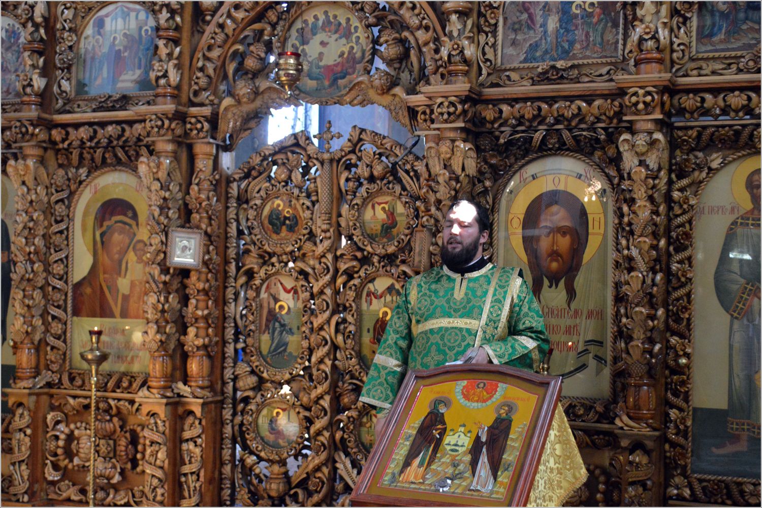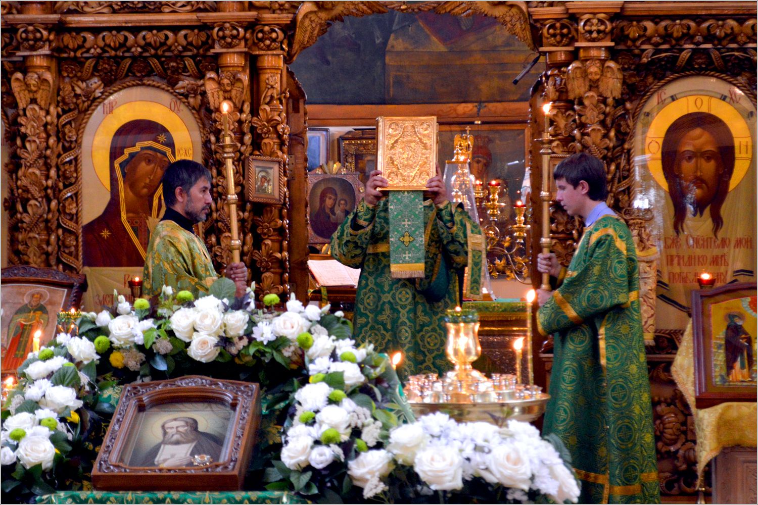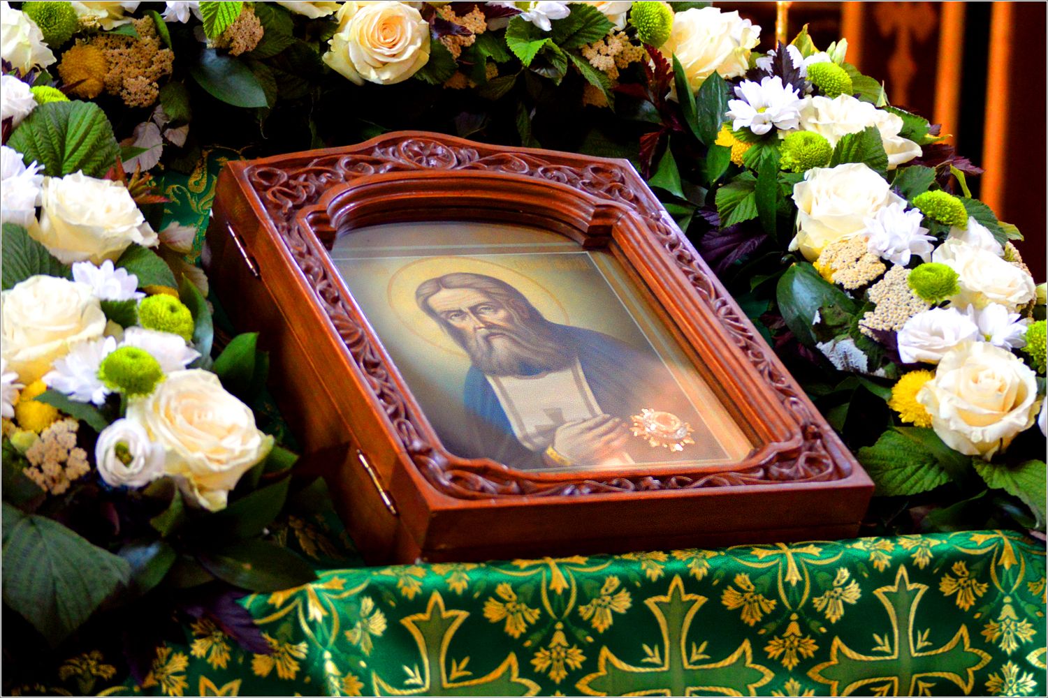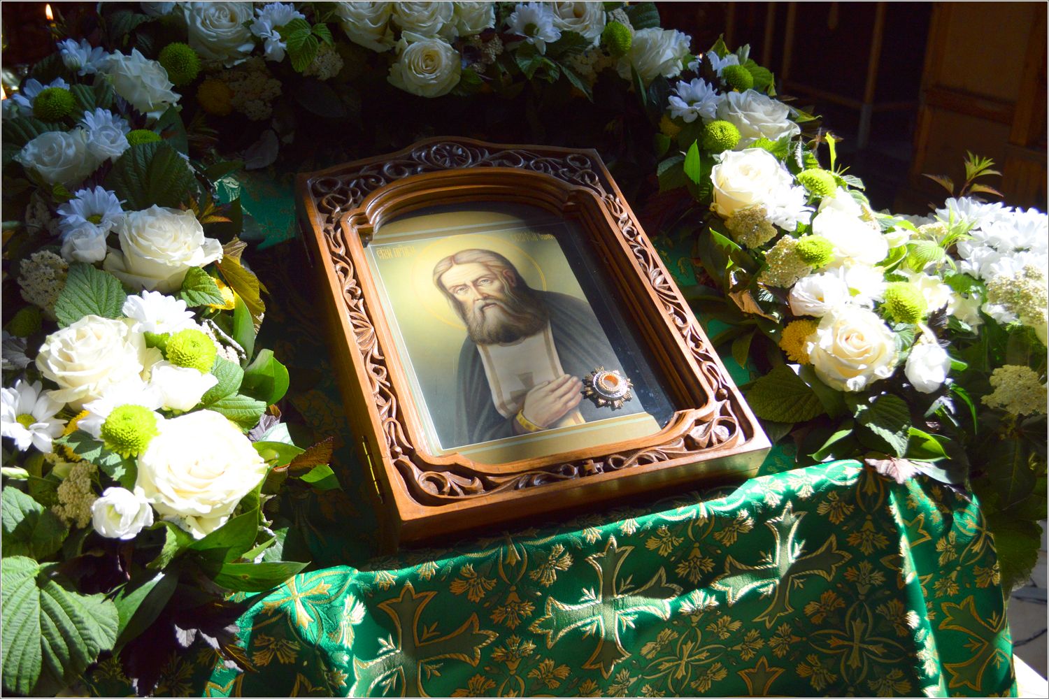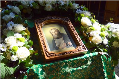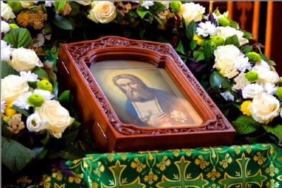 Ради торжественной службы на середину храма была вынесена одна из главных святынь прихода — икона с частицей мощей саровского старца, перед которой были совершены Всенощное бдение, Литургия и праздничный молебен.