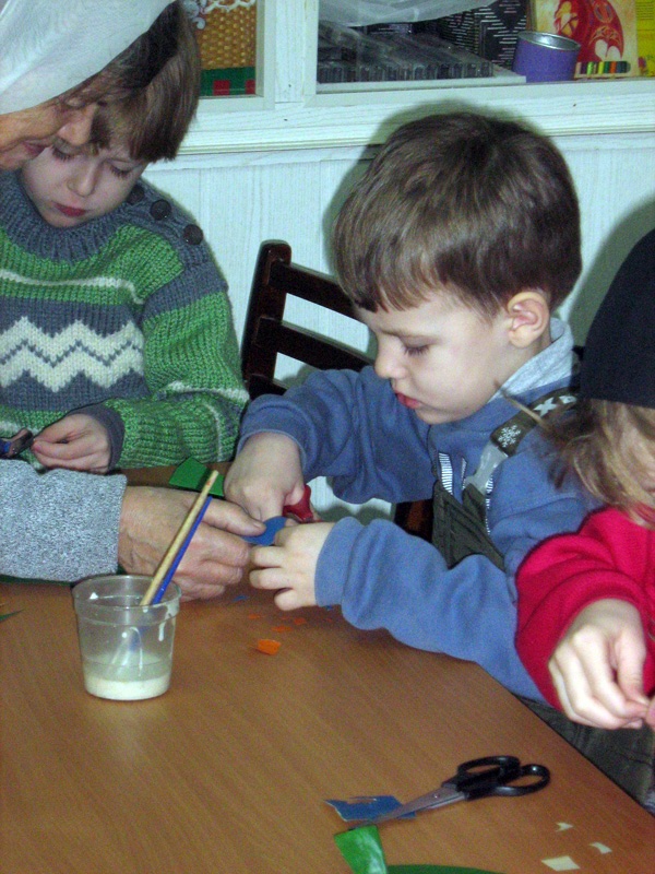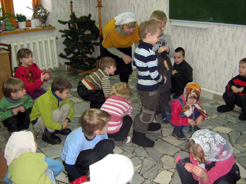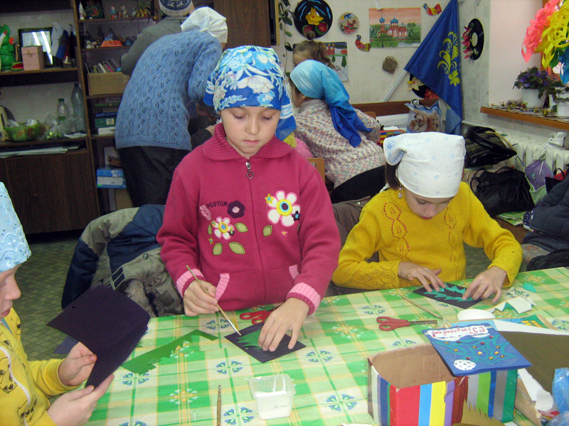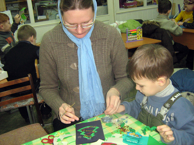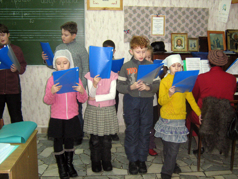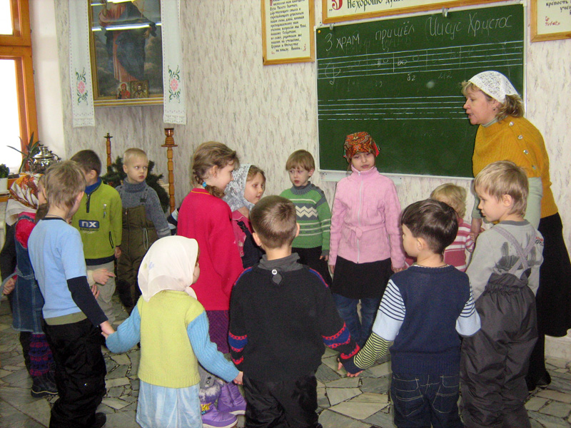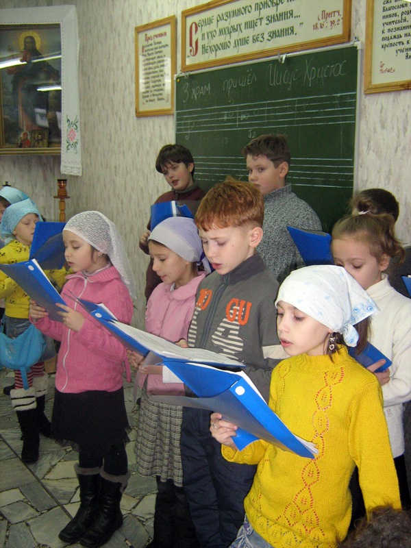 В зимние, морозные дни, когда весь мир с трепетом ожидает Рождество Христово, в детской воскресной школе началась подготовка к празднику. С раннего утра, еще только поднимаясь по лестнице в класс, можно услышать детское мелодичное пение. Это старшая группа с педагогом по музыке Ворожейкиной Ольгой Михайловной репетирует рождественские песни к выступлению. А ребята пяти-семи лет в соседнем классе старательно вырезают из цветной бумаги фигурки для поделок на рождественскую ярмарку, которая пройдет 7 января после поздней литургии.
