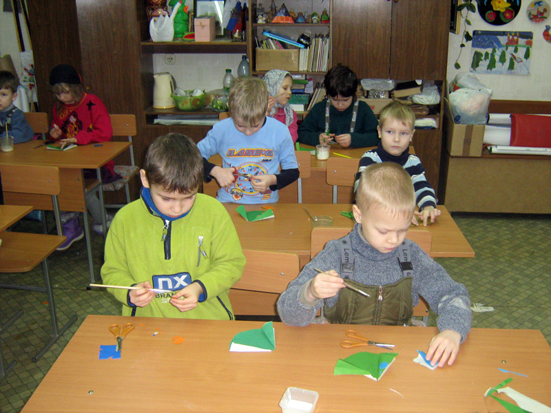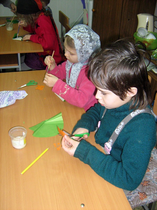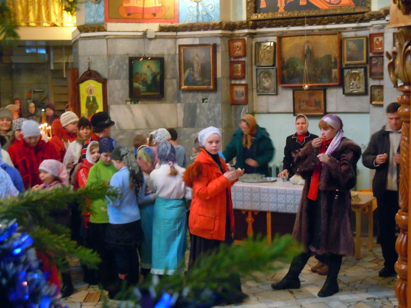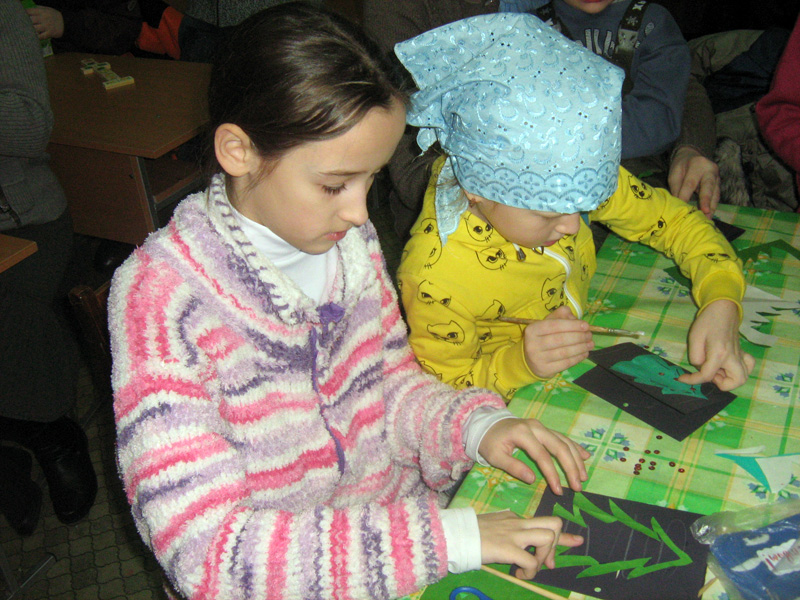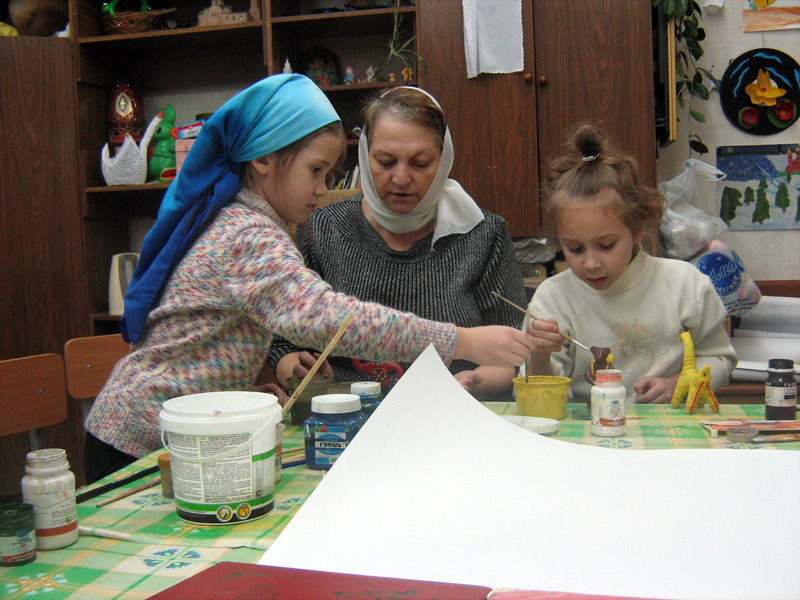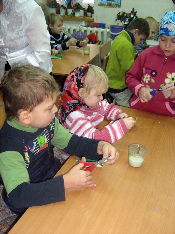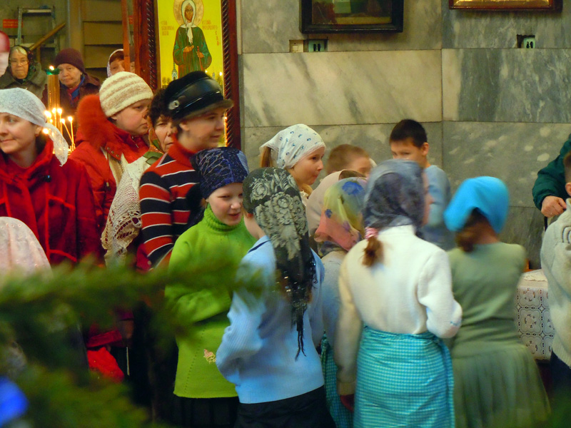 В зимние, морозные дни, когда весь мир с трепетом ожидает Рождество Христово, в детской воскресной школе началась подготовка к празднику. С раннего утра, еще только поднимаясь по лестнице в класс, можно услышать детское мелодичное пение. Это старшая группа с педагогом по музыке Ворожейкиной Ольгой Михайловной репетирует рождественские песни к выступлению. А ребята пяти-семи лет в соседнем классе старательно вырезают из цветной бумаги фигурки для поделок на рождественскую ярмарку, которая пройдет 7 января после поздней литургии.