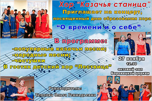 Хор «Казачья Станица» приглашает всех желающих на свой концерт, посвященный дню образования хора.