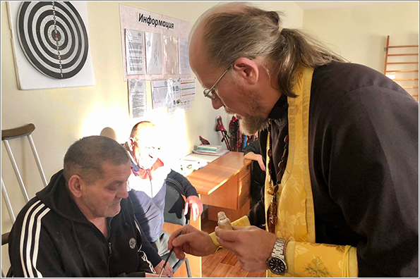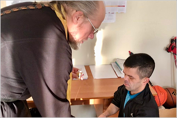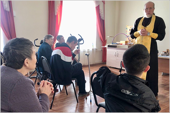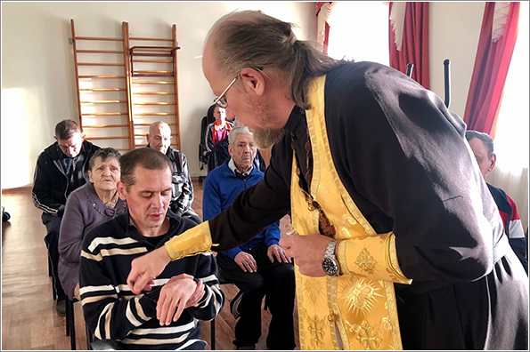 В абсолютной тишине подопечные дома-интерната внимали каждому слову проповеди, Иногда качая головой в знак согласия, иногда замирая и осмысливая услышанное, как будто сказанное было для них открытием чего-то нового.