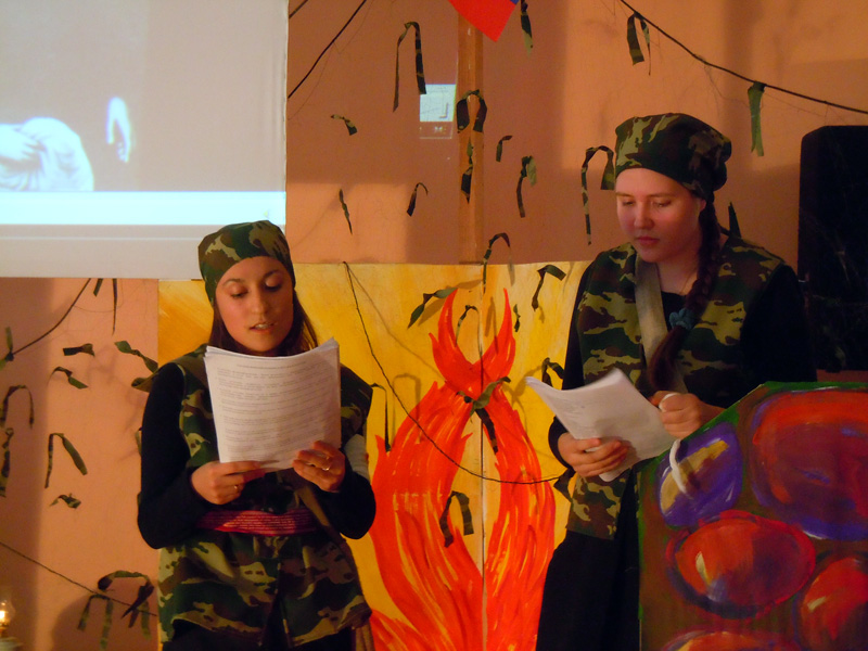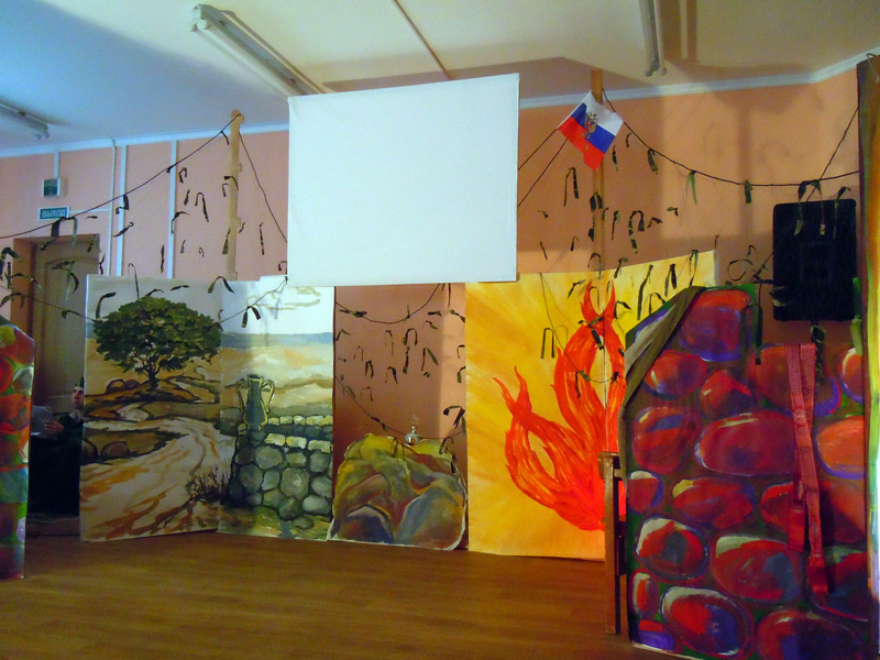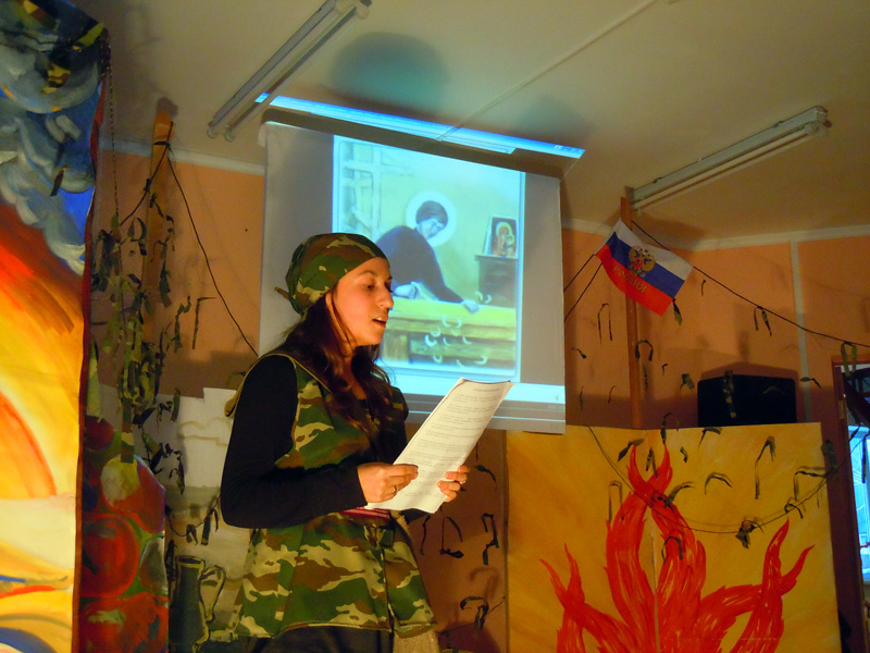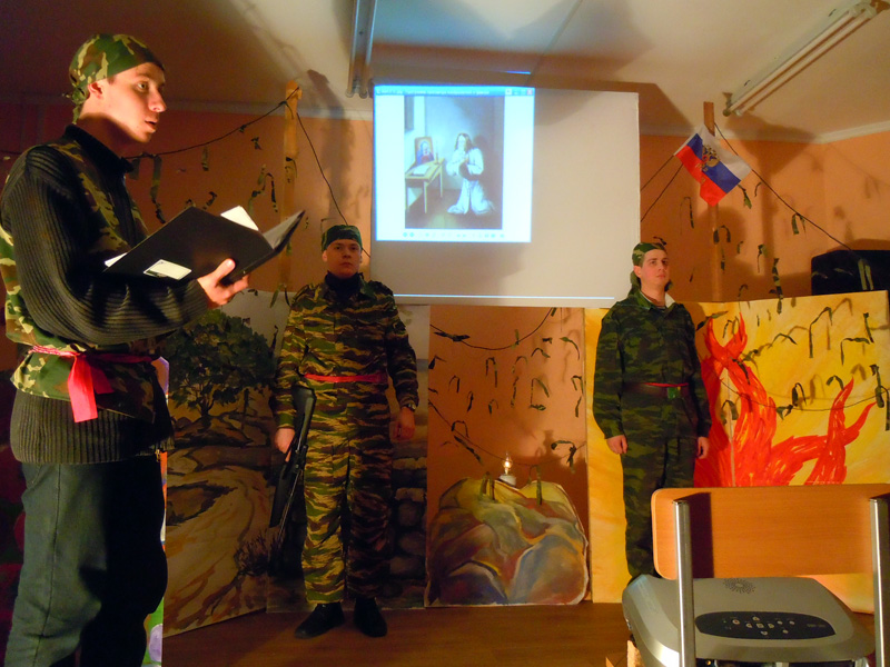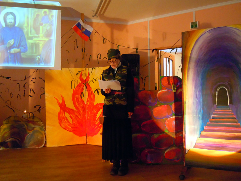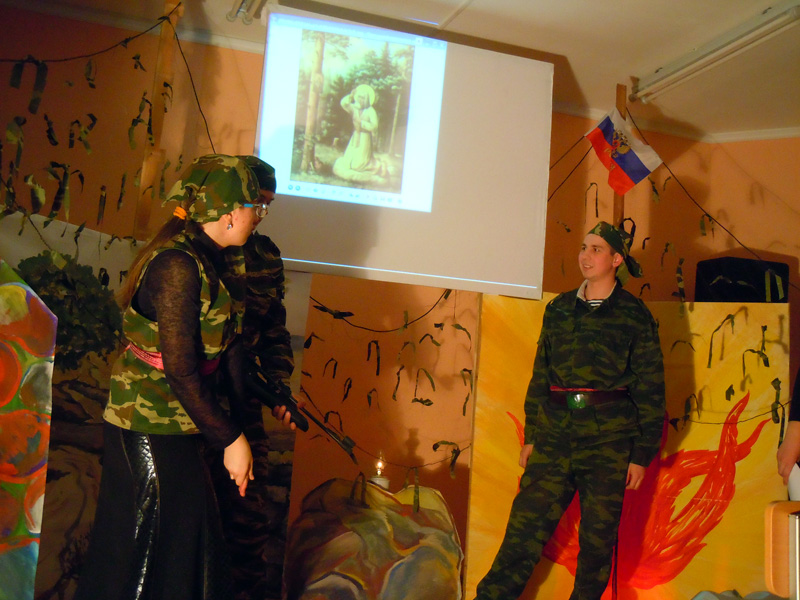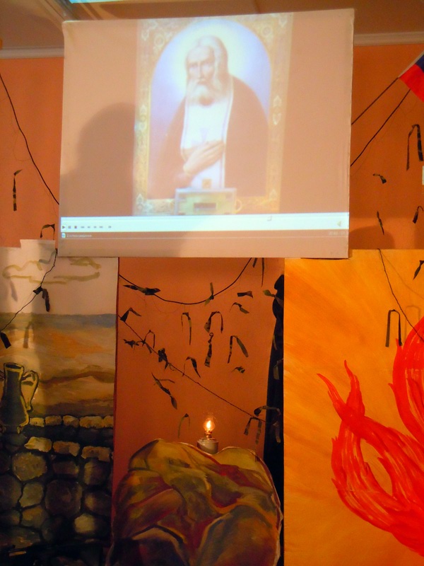 Создание декораций, костюмов, сюжета эссе, подбор музыкального сопровождения и слайдов – все в течение последних нескольких месяцев постепенно создавалось труппой театра. Изначально долго вынашивалась идея показать на сцене пример беззаветного служения своему Отечеству, ценностям добра, справедливости, милосердия. Таким ярким примером стала подвижническая жизнь преподобного Серафима Саровского, которая и вдохновила ребят на необычную постановку.