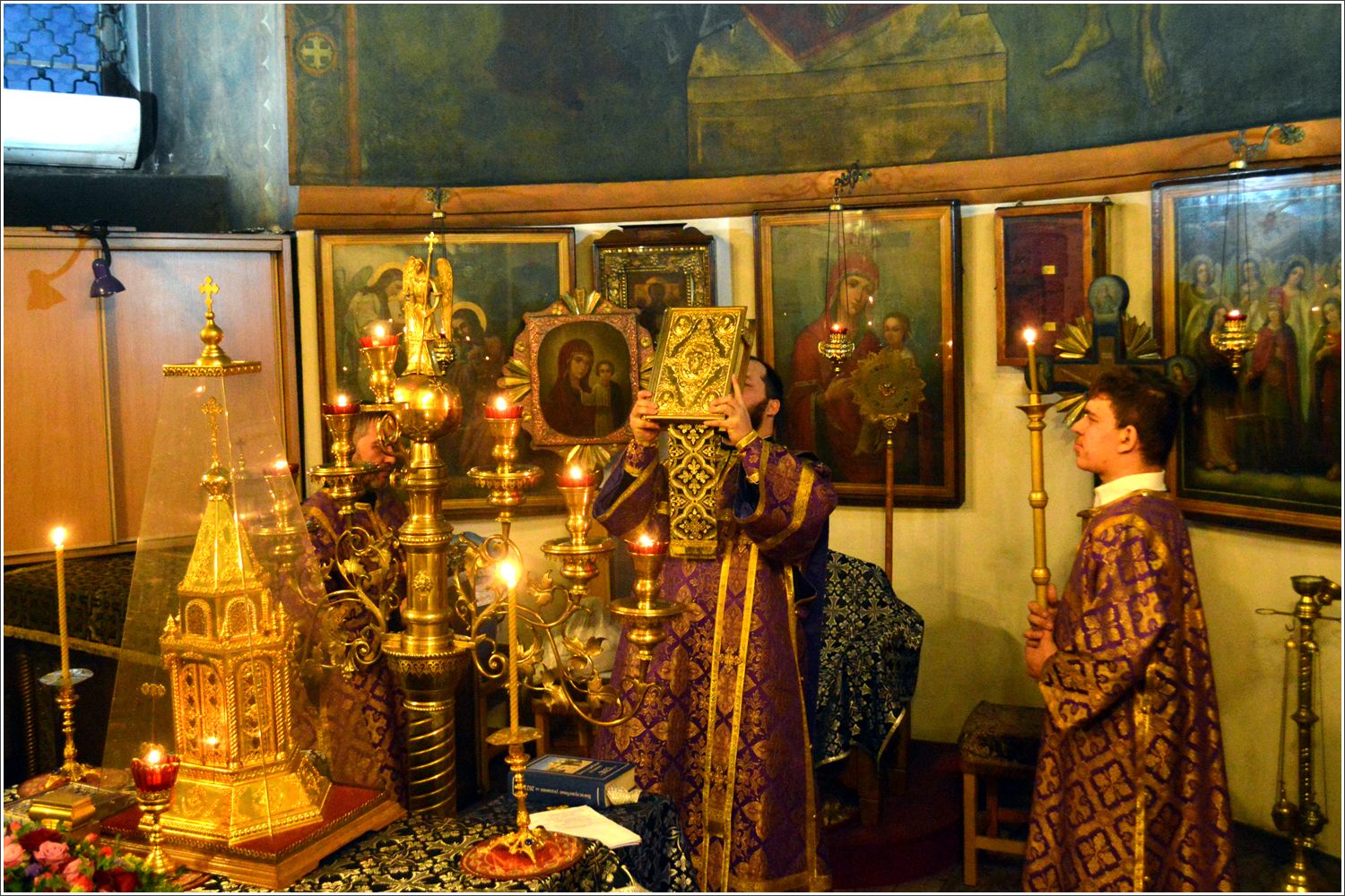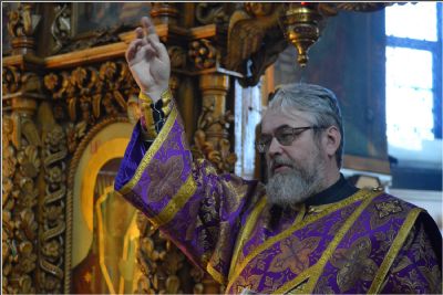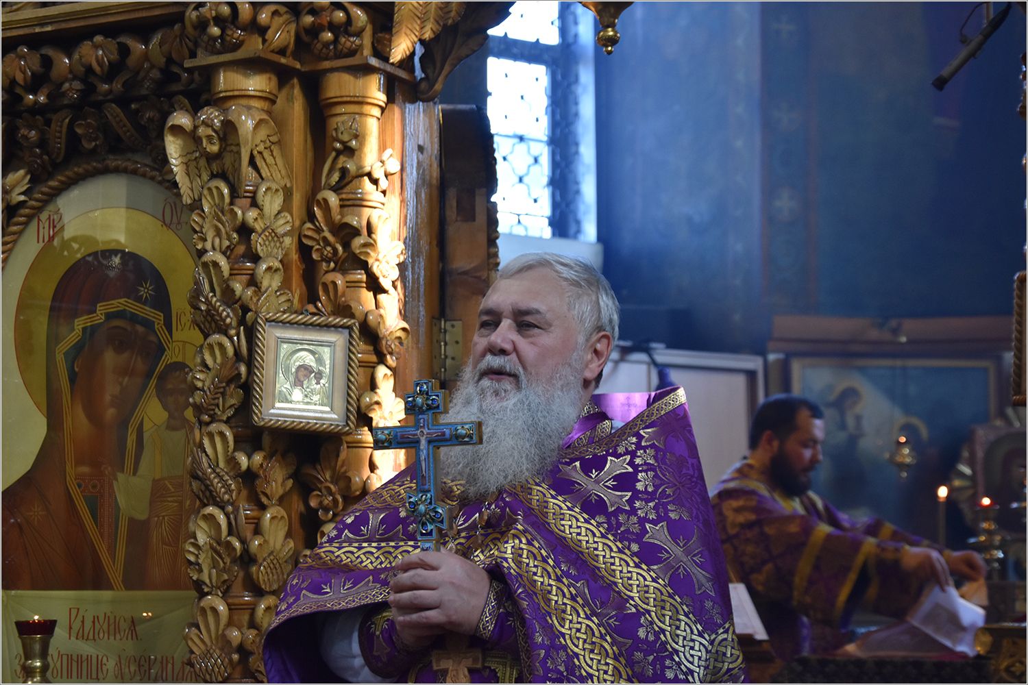 Позднюю Литургию в соборе возглавил благочинный Закамья протоиерей Андрей Дубровин. После чтения Евангелия он также произнёс проповедь, посвящённую Кресту Господню.