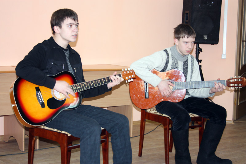 Показали свое мастерство и ученики курсов игры на гитаре при Боровецкой церкви – Антон Лавров и Илья Крылов. Ребята исполнили песни «Печенеги» и «Звезда по имени солнце» Виктора Цоя.