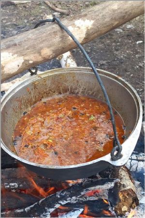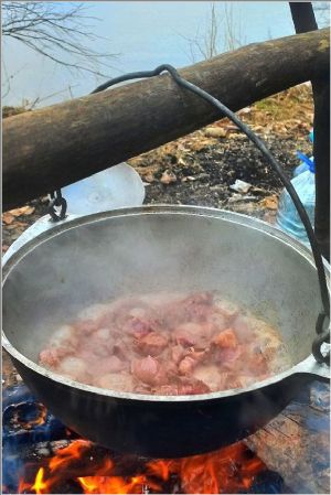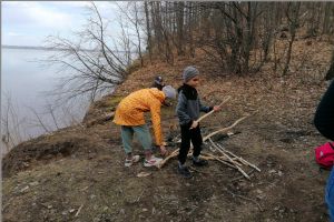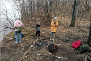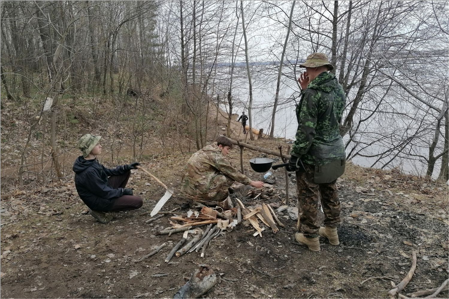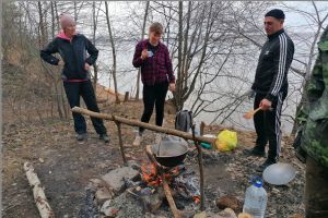 Дойдя до места назначения, спасовцы разбили лагерь. Младшие ребята начали заготовку дров, взрослые приступили к разведению огня, а родители занялись приготовлением пищи. Пока готовился обед, все дружно отгадывали загадки, играли в игру «Глухой телефон».