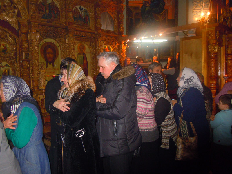 Отец Андрей от лица всех клириков храма попросил прощения у прихожан, а затем каждый, целуя святые иконы, испрашивал прощения у священнослужителей. Церковь была наполнена покаянными песнопениями, которые как фимиам возносились под купол храма. И как важно, чтобы очищающее чувство покаяния было пронесено на протяжении всего великопостного периода с надеждой на достойную встречу праздника праздников – Воскресения Христова.