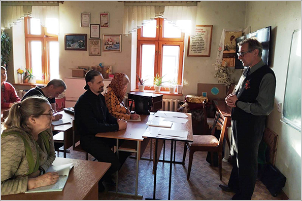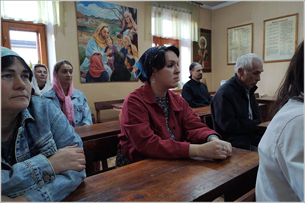 Затем студенты посетили занятия руководителей отделений Школы катехизаторов, которые в это время проводили свои учебные занятия — руководителя клиросного отделения Елены Есауленко, руководителя миссионерского отделения, помощника благочинного Закамского округа по миссионерскому служению Сергея Железняка и руководителя отделения уставщиков, секретаря Закамского благочиния протодиакона Дмитрия Половникова.