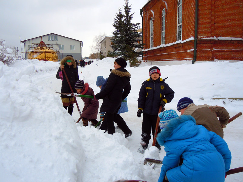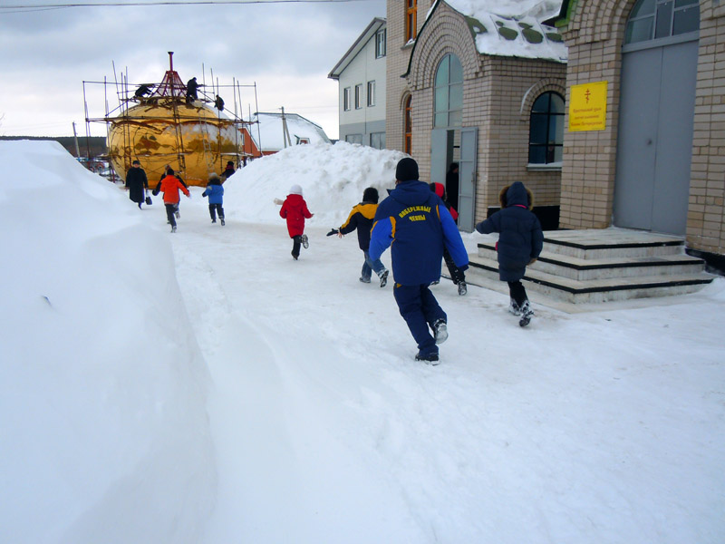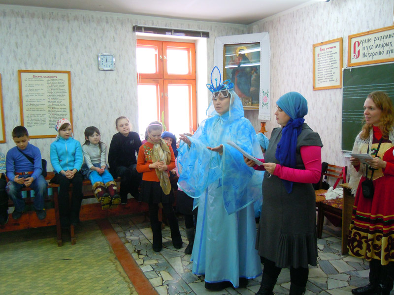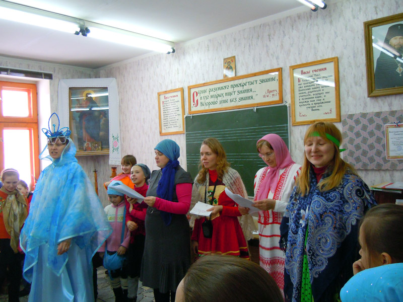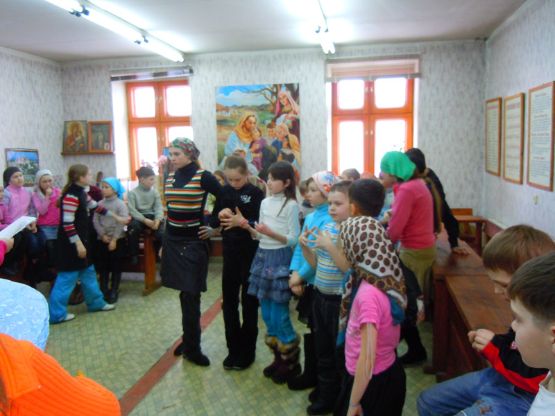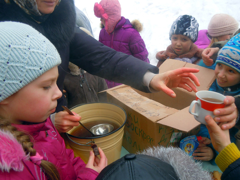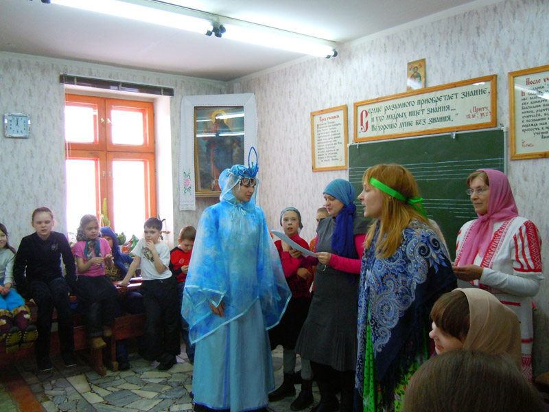 Начался праздник с концерта, во время которого ученики воскресной школы отгадывали загадки на тему Великого поста. После чего ребята высыпали на улицу, где их ждали веселые эстафеты. По картам детям необходимо было пройти станции и принять участие в конкурсах: почистить снег на скорость, нарисовать красками на снегу, сделать бинтовую повязку на станции под названием «Скорая помощь». За каждое выполненное задание ребята получали буквы, из которых потом команды сложили названия главных христианских добродетелей.