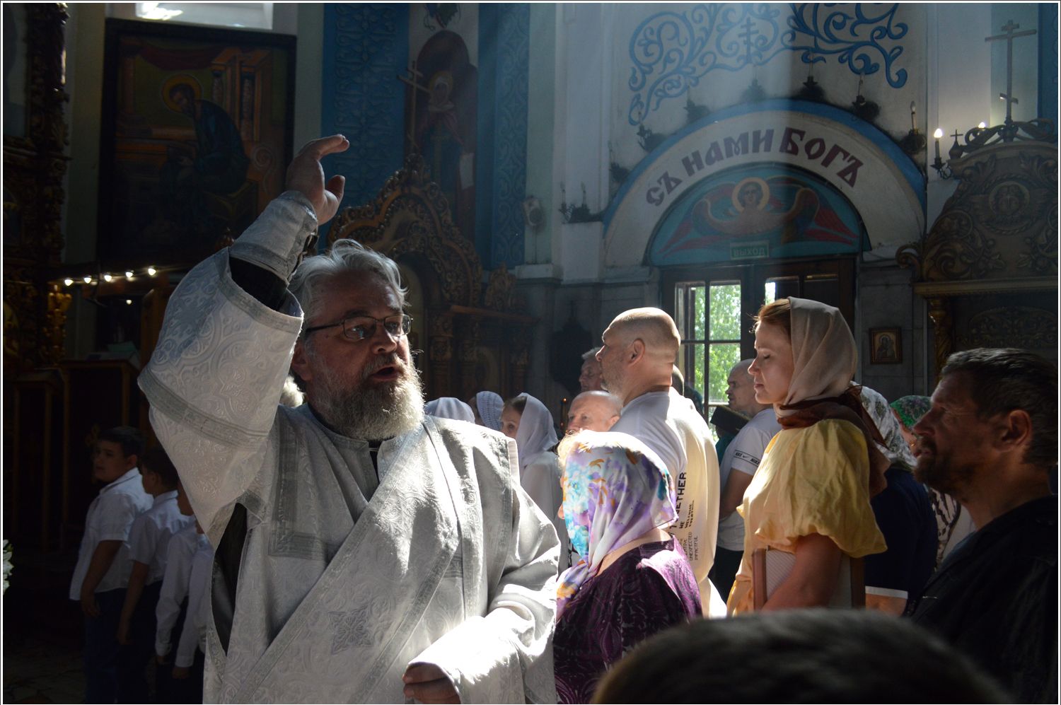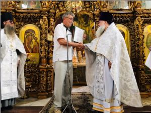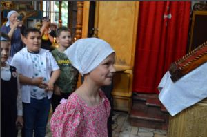По завершении Причащения благочинный отец Андрей вручил похвальные грамоты об окончании учебного года воспитанникам воскресных школ Свято-Вознесенского собора и храма святых бессребреников Космы и Дамиана.