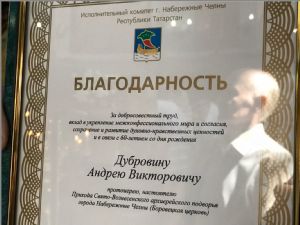 Завершилось престольное празднование Крестным ходом вокруг храма, после которого прихожане и священнослужители собора поздравили с прошедшим юбилеем настоятеля протоиерея Андрея Дубровина, которому в этот день было также вручено благодарственное письмо от администрации города Набережные Челны за вклад в поддержание межконфессионального мира в регионе.