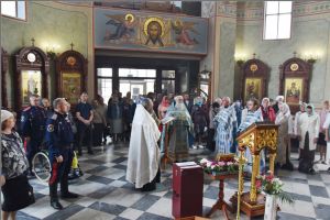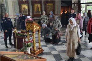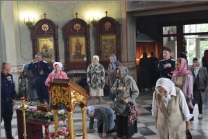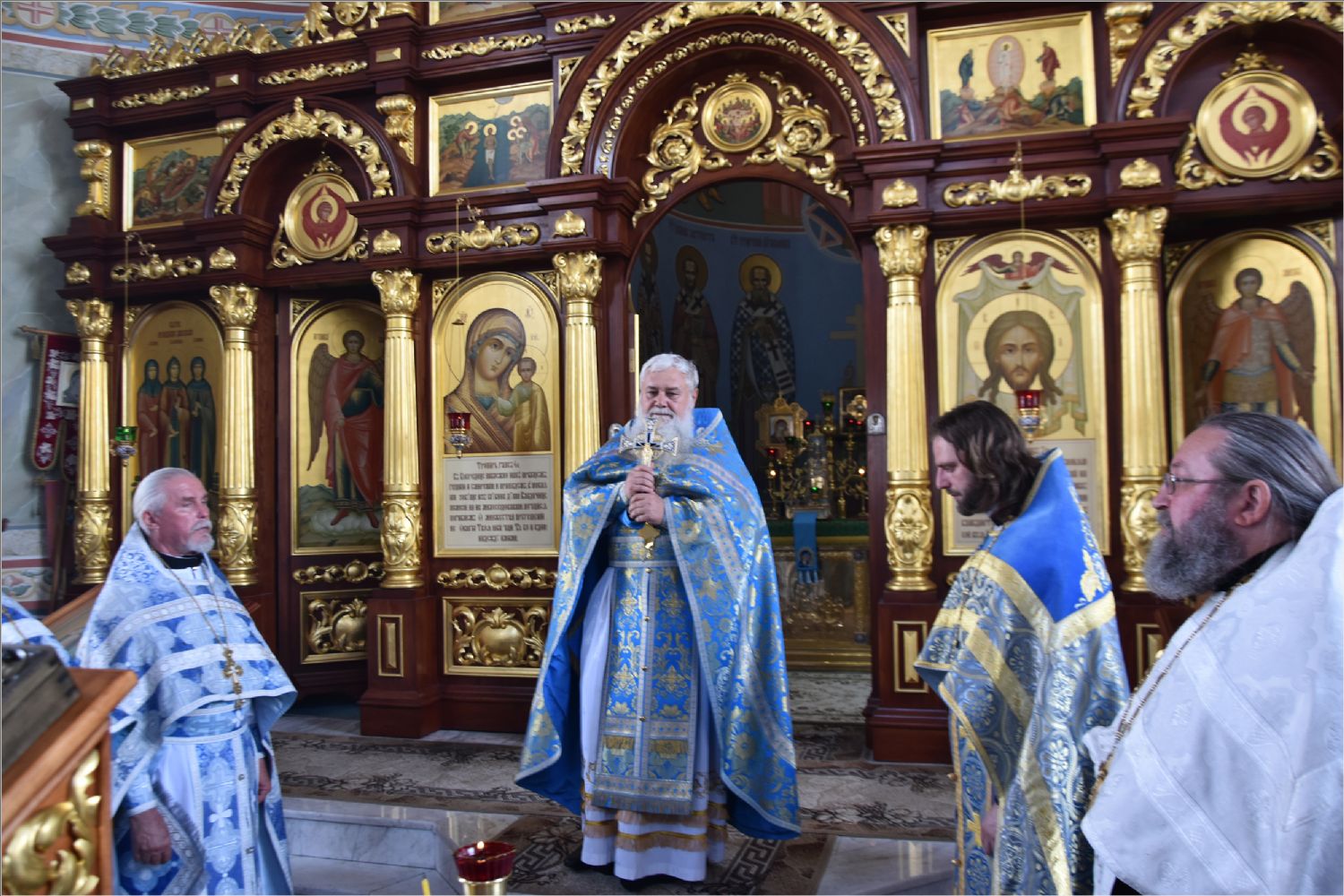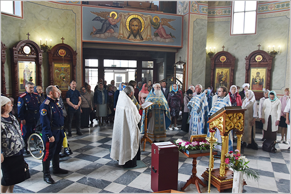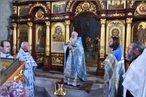 После завершения Литургии было совершено молебное пение с акафистом Царице Небесной, по завершении которого была вознесена молитва к Богородице и воспето величание Пречистой.