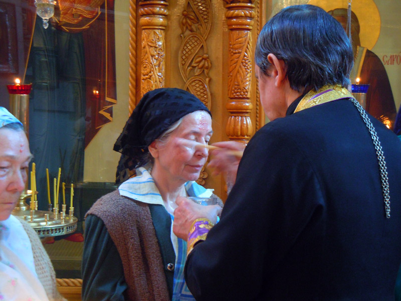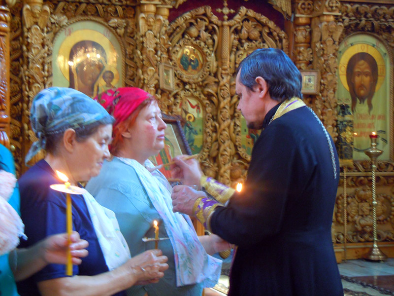 После вознесения молитв были зачитаны семь текстов из апостольских посланий и семь – из Евангелия. После каждого чтения, напоминающего об исцелении Богом человеческого тела и души, о Его милосердии, с произнесением молитвы священники храма совершили помазание. По окончании последнего чтения Священного Писания было возложено Евангелие на головы соборуемых.