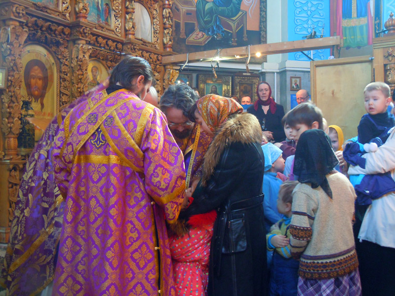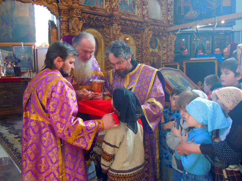 В третью великопостную Неделю Православная Церковь прославляет Крест – символ нашего спасения, крестные страдания Господа нашего Иисуса Христа, а также утешает верующих вначале нелегкого пути навстречу Светлому Христову Воскресению. В эту неделю две группы детской воскресной школы «Буки» и «Веди» приступили к Святым Дарам. Вечером еще перед Всенощным бдением ученики и педагоги совершили общую молитву, чтобы достойно приступить к этому великому Таинству. После им следовало отстоять вечернее богослужение и приложиться ко Кресту.