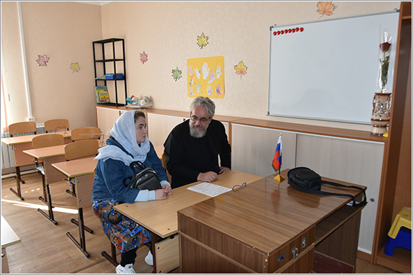 Собеседование, состоявшееся 3 сентября, провёл помощник благочинного по религиозному образованию и катехизации иерей Георгий Опарин вместе с преподавателями протодиаконом Дмитрием Половниковым и Ольгой Тепловой.