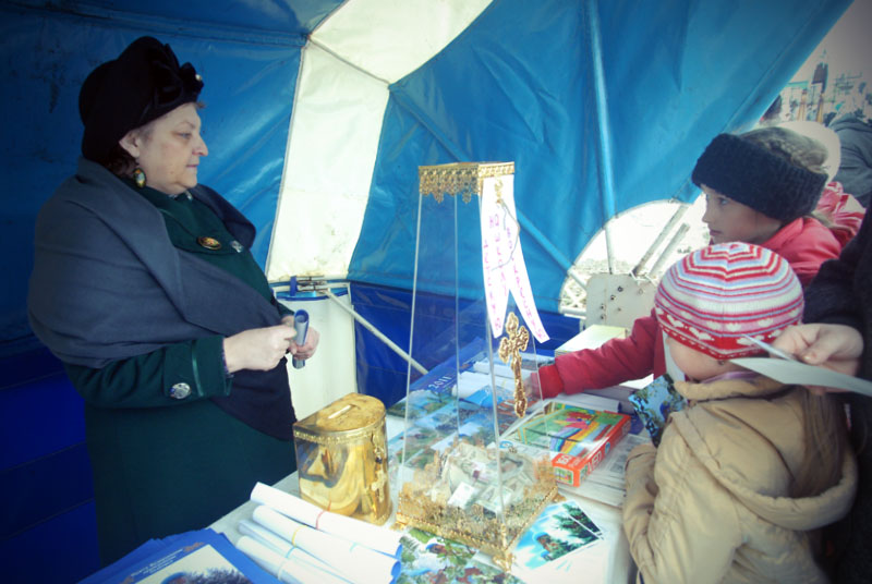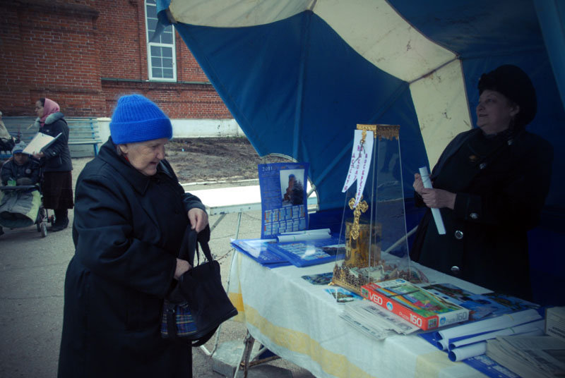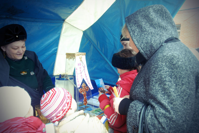 В этот же день прошли праздничные мероприятия. На территории храма была организована праздничная благотворительная ярмарка, сбор пожертвований с которой пойдет на нужды детей-сирот и приходской воскресной школы. В благодарность за пожертвования группой молодежи были подарены фотографии, календари с изображением храма, приходские газеты, вербы и выпеченные руками детей воскресной школы жаворонки из теста.