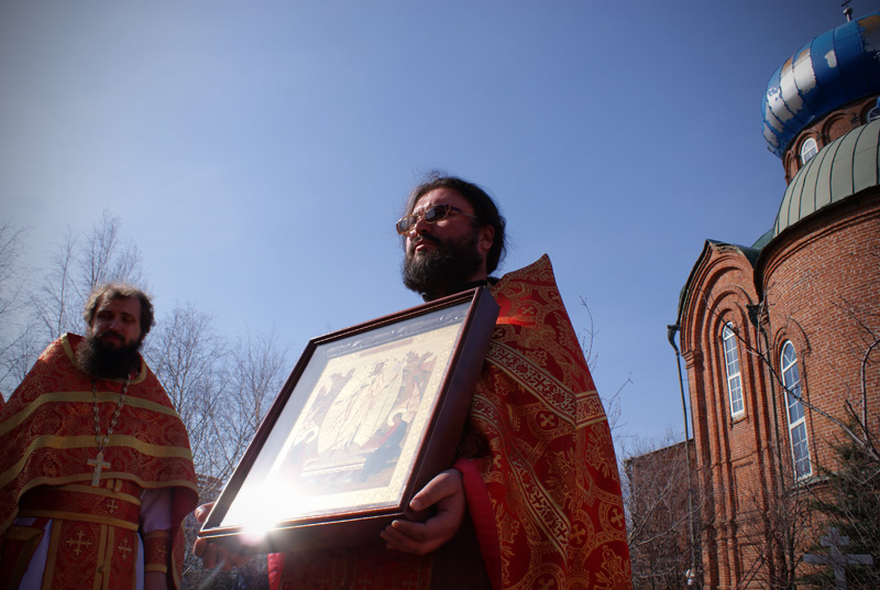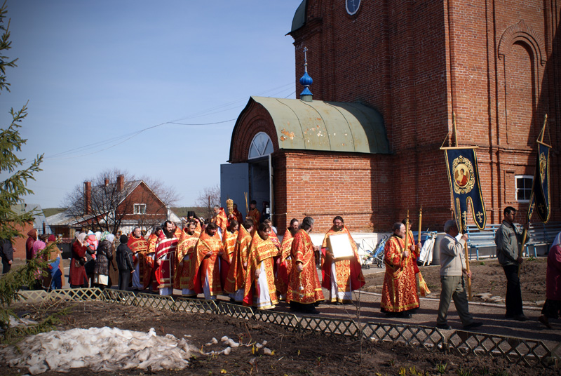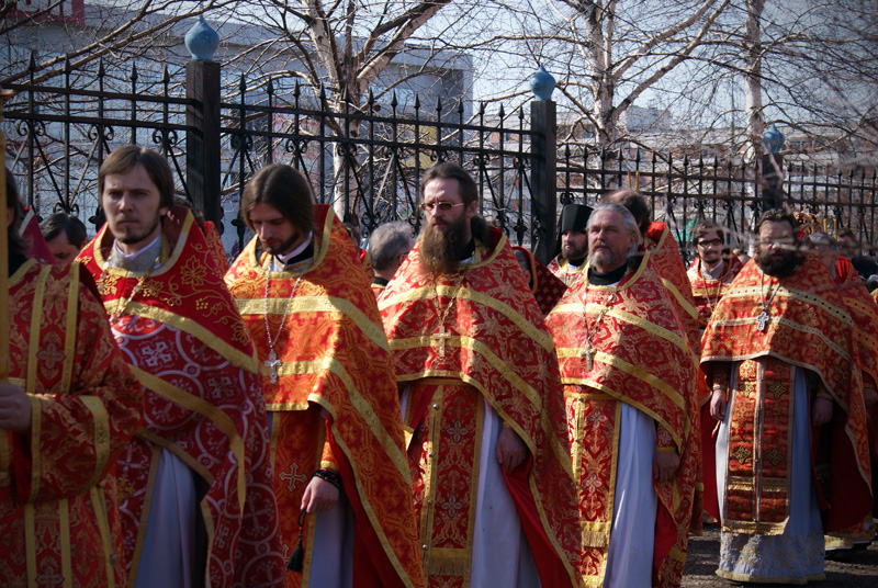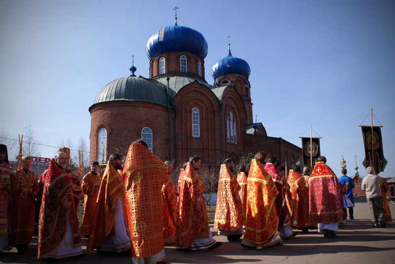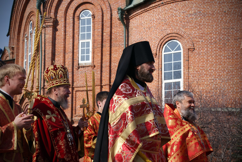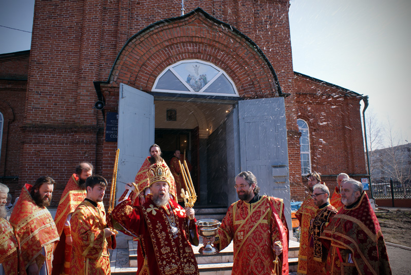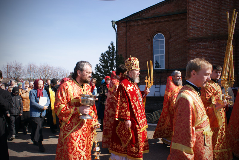 После крестного хода, по традиции, архиепископ Анастасий обратился к прихожанам, пришедшим на Литургию, с праздничной речью. «Наипаче ищите Царствия Божия» − такую заповедь дает нам Божественный Учитель, Господь Иисус Христос. Эта мысль стала главной темой его проповеди. 40 дней пребывания на земле Воскресшего Господа для многих так и остались темной завесой, потому что они не познали Христа как Мессию. «Это состояние земного бытия, когда человек не стремится к вечности, – пояснил Владыка, − мы с вами порой живем по тем же принципам. Воскресший Господь стоит у дверей сердец каждого из нас, а мы можем пройти мимо. Мало заботиться о земных благах, ведь на земле мы только странники». В заключении он добавил, что, только положив цель земного бытия к созиданию Царствия Божьего, можно познать духовную радость Воскресения Христова.